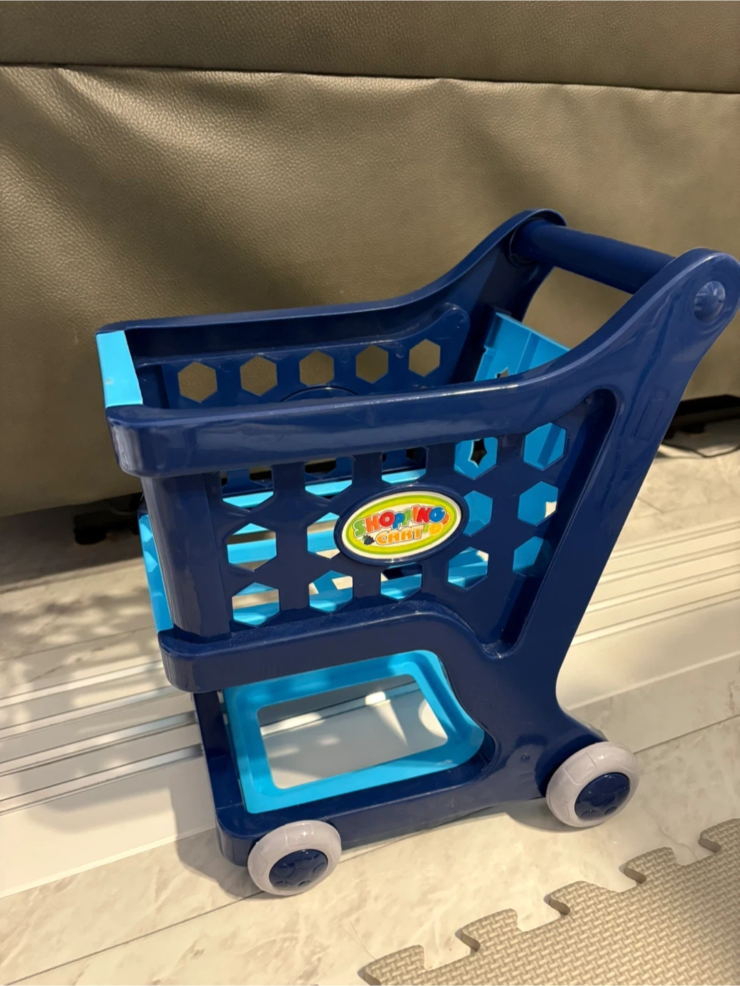 お買い物カートのおもちゃです ・色:青、水色 ・状態:出品者はあまり使用していませんが、オンラインサイトで買ったものなので最初からプラスチックに傷があったりはします。 ・組み立てはやってありますのでそのままお渡しもできます。もともとついていた買い物カゴはお渡ししてません。カートのみです。 https://amzn.asia/d/8DHKXCM このサイトのブルーのものです。