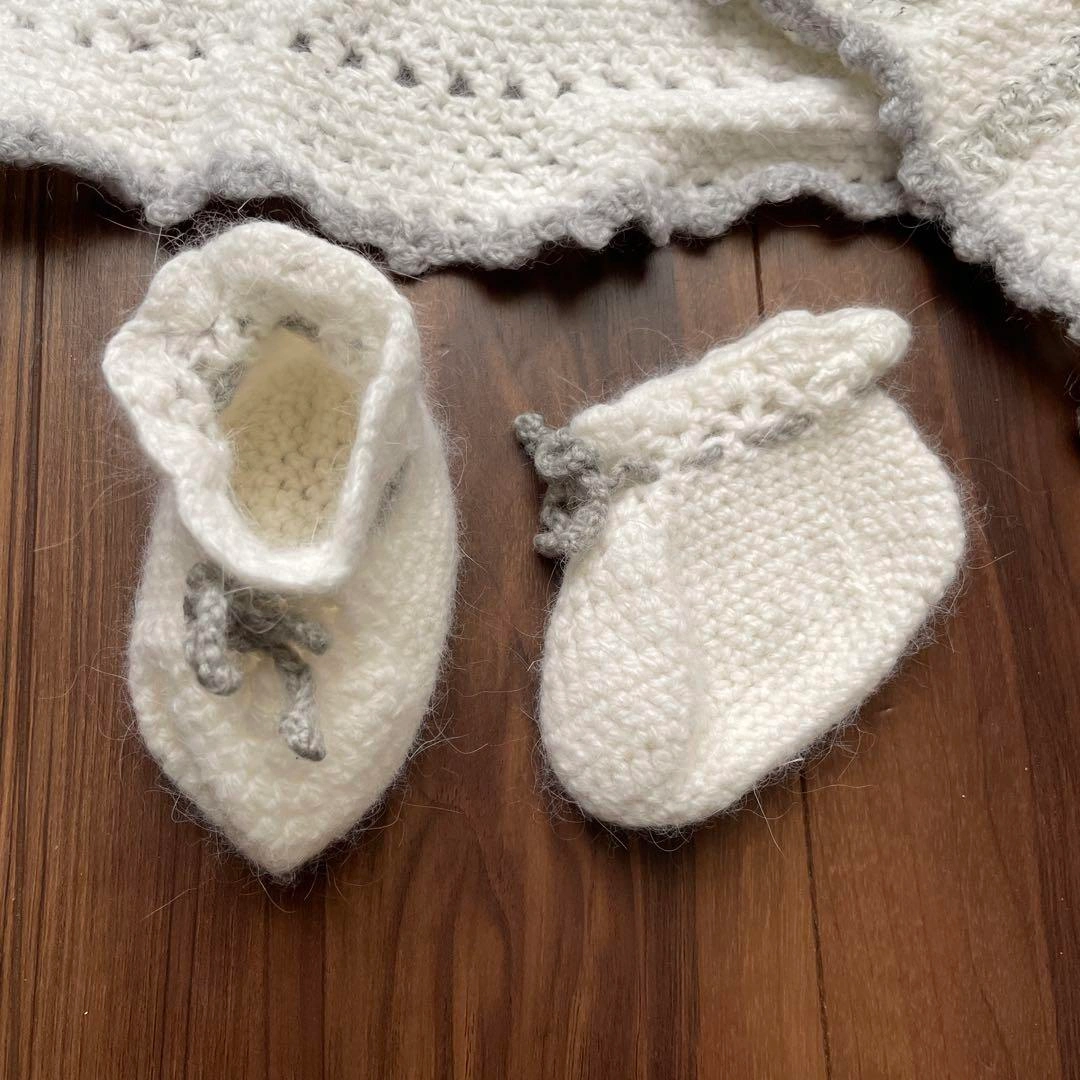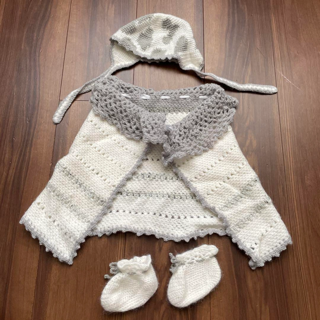 かぎ針編み ベビー 帽子、羽織り、靴下