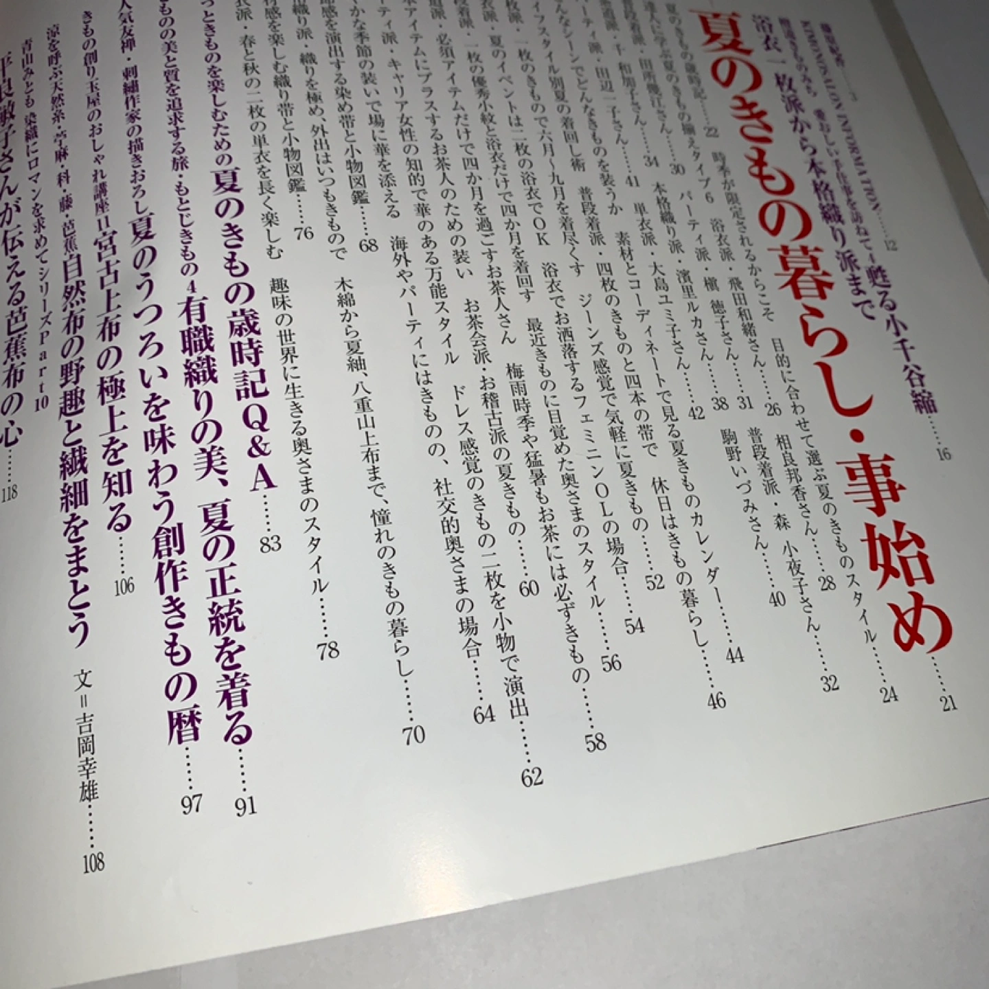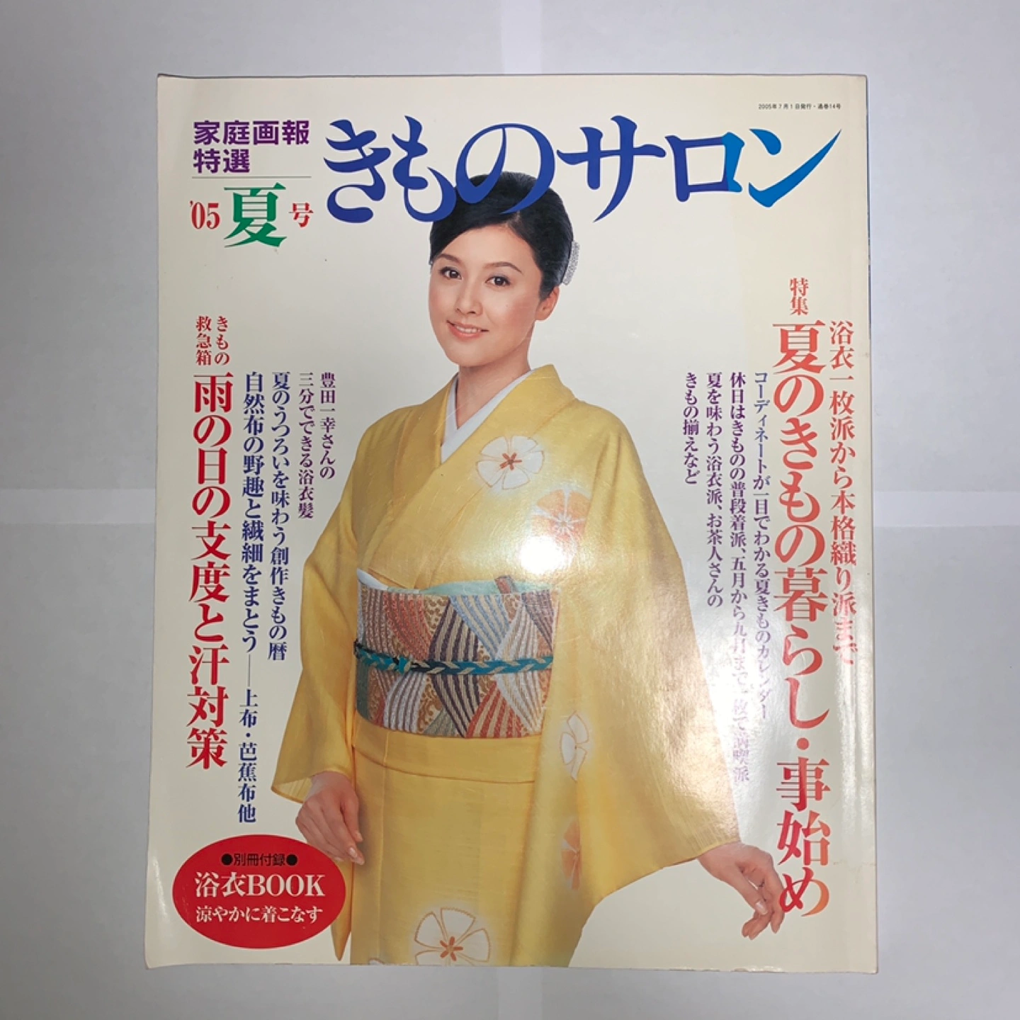 【家庭画報】特選雑誌「きものサロン」の2005年夏号(別冊付録つき)です。 表紙は藤原紀香さん。 達人のアイディアから、シーンに合わせた夏着物のセレクトやコーディネートを提案。涼しげな色・柄のさまざまな素材の夏着物が楽しめます。 別冊付録では、浴衣の着付け方、帯結びのポイントも掲載しています。 【きものサロン】夏のきもの暮らし・事始め 【別冊付録】浴衣着こなしBOOK 【発行日】2005年7月1日 【発行】世界文化社 【定価】1950円(税込)