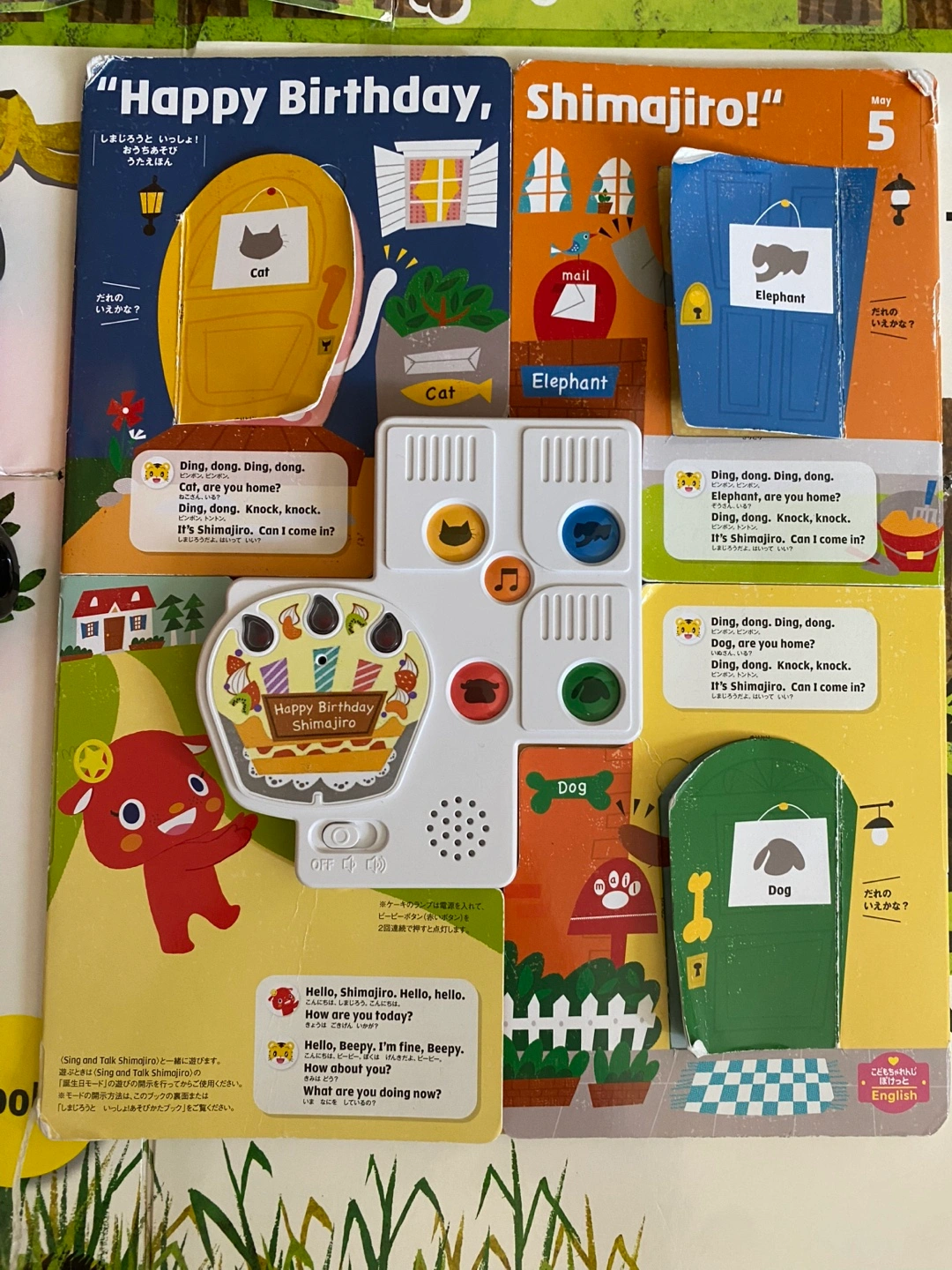 子どもが1歳から使用しました! 状態は写真にてご確認をお願い致します。 紙には破れ等あります。 子どもが使用した物ですのでご理解頂ける方のみご購入をお願い致します。 様々な英語の歌等が沢山流れておすすめです♡電池はつけたままお渡し予定ですのですぐに使用できます^ ^ 多少音が不鮮明なところがあるかもしれません。 格安ですのでご理解頂ける方のみご購入をお願い致します。 他にもこどもちゃれんじの商品を出品しています。まとめて購入大歓迎です!