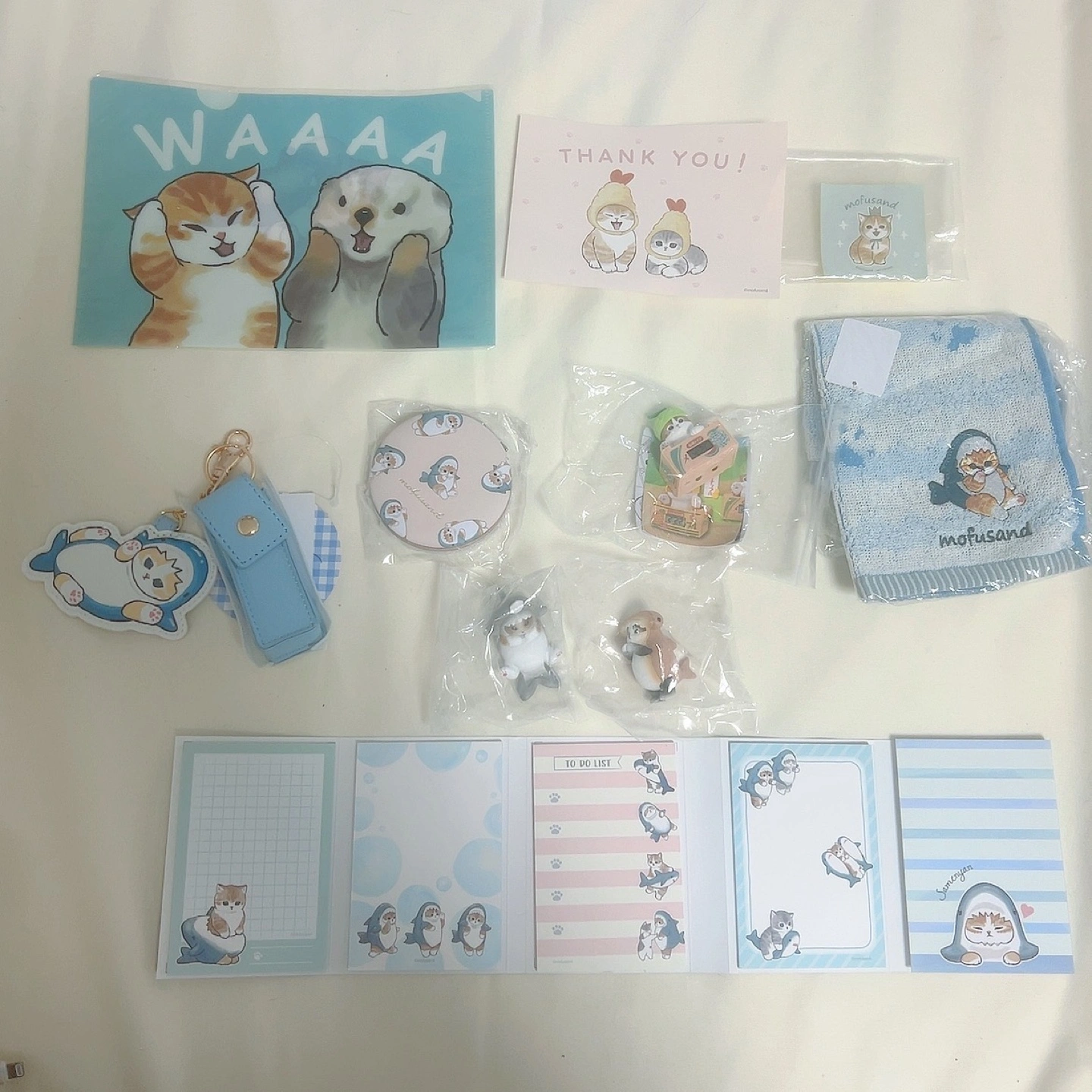 可愛いモフサンド さめにゃんグッズ 10点セットです♡ ・メモ帳(6種類) ・リップポーチ(定価:¥1760 値札付き) ・マスコット×3種 ・サークルミラー(定価:1650 値札付き) ・シール ・ポストカード ・ハンドタオル ・クリアケース ------------------------ #サメにゃん #さめにゃん #マスコット #mofsand #ギフト #エビフライにゃん #フルーツにゃん