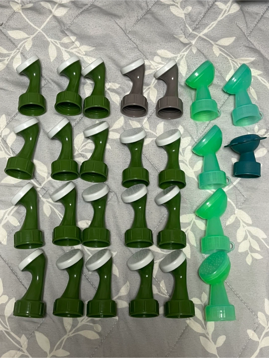 じょうろのヘッドのまとめ売りです ・色:緑、グレー ・状態:中古品 ・26個セットです。 数回つかいました。綺麗に洗ってあります。 ご不明点があればお気軽にご連絡ください