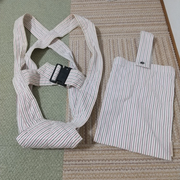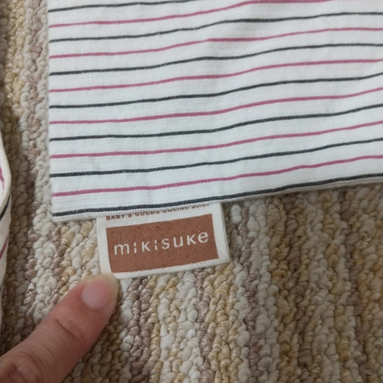みきすけ ミキスケ mikisuke 抱っこ紐 収納袋つき ピンクと、黒もしくは紺のストライプ柄 サイズは不明ですが、163cmやや細身女性と173cmやや細身男性が問題なく使えておりましたのでたぶんM?かなと。 小柄な方ですと、少し赤ちゃんが下のほうになってしまうかもしれません。 布製でコンパクトになるので、サブで使う抱っこ紐として重宝しました。 保育園のロッカーやベビーカーの荷物入れでも場所をとりません! 説明書などはないので、使い方はネットで調べてみてください。 全体的に経年に伴うシミが浮き出ており、画像より実物のほうがシミが目立つと思います。。 丸洗いできますので、漂白したら少しはきれいになるかもしれませんが、ご了承のうえご検討くださいm(_ _)m 試してみたい方がいらっしゃれば、無料ですのでどう ぞm(_ _)m