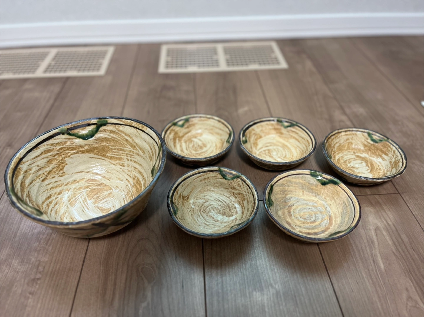 最終価格 花型盛り皿 陶芸作家 和食器 イエロー キャメル色 19.5×23.5㎝