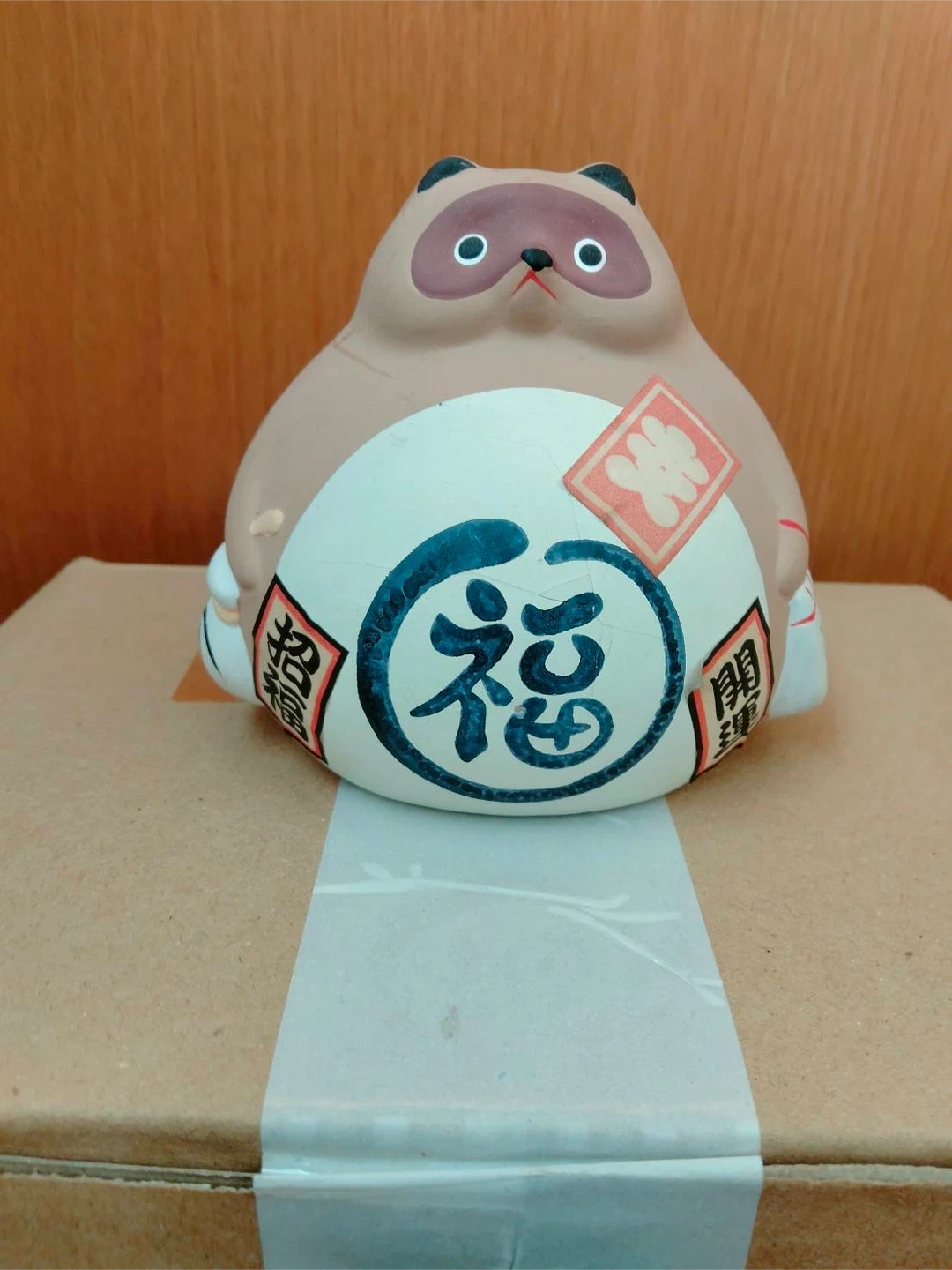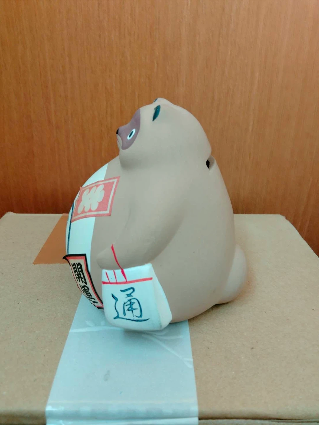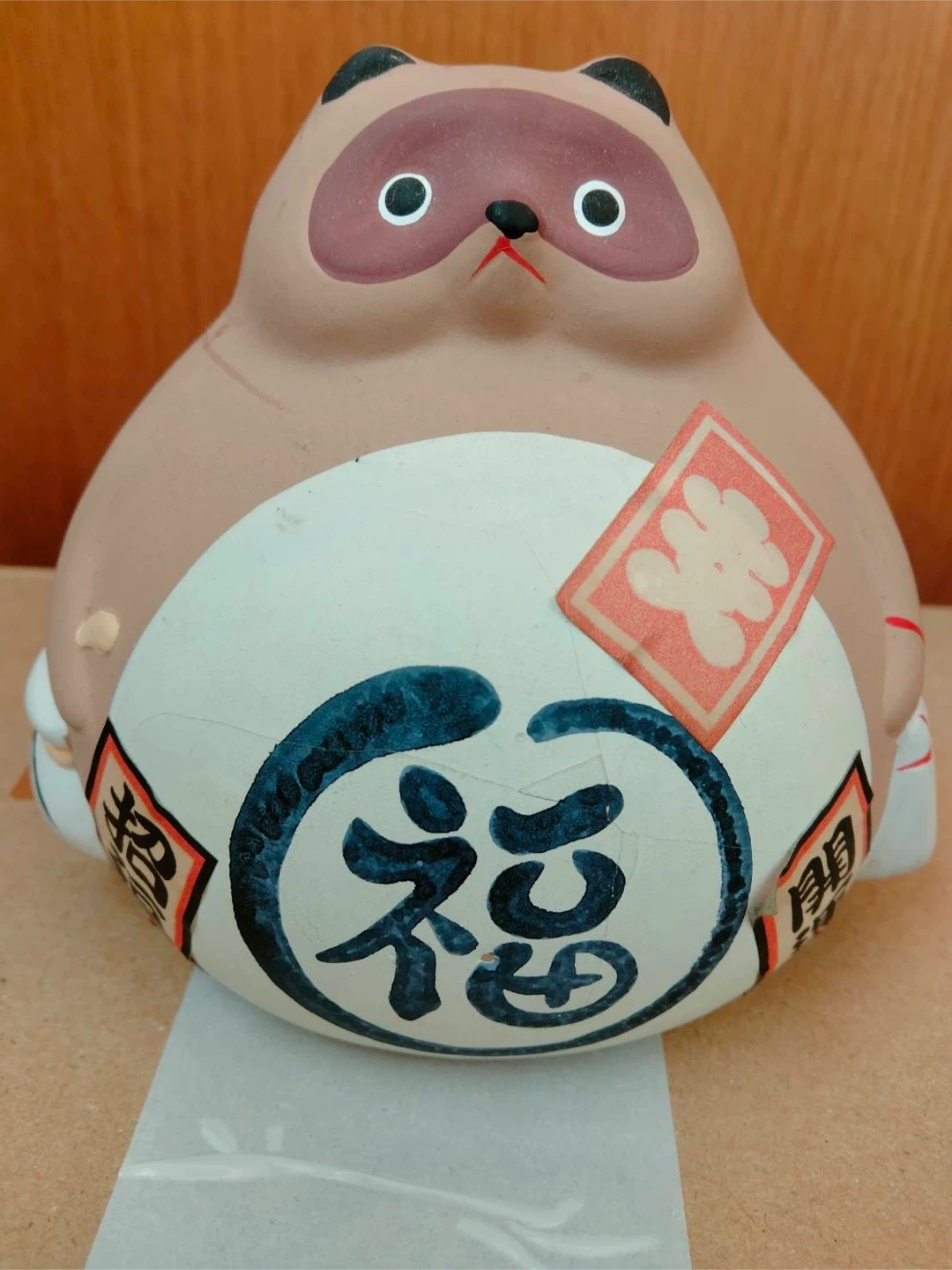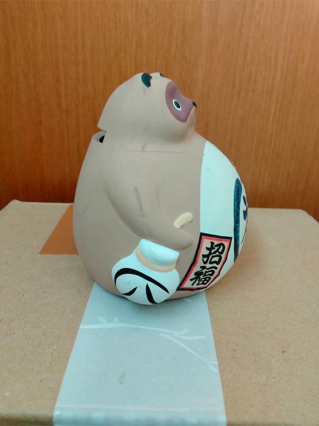 あたたかさ購入前に連絡お願いします 福狸 貯金箱 写真は4面撮ってます 汚れ、ヒビ有ります ヒビ狸のお腹の白い部分 福の字の真ん中にある点はオヘソです 高さ9 幅10 奥行9センチ 自宅3階