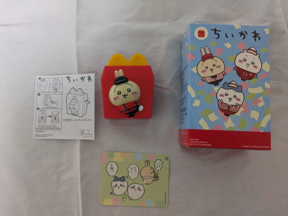 ちいかわハッピーセットです。 新品ではありません。 しばらく家で飾って箱にしまいましたが箱が合っているかわかりません。 シール1枚付けました。 写真をご覧下さい。 よろしくお願いします。