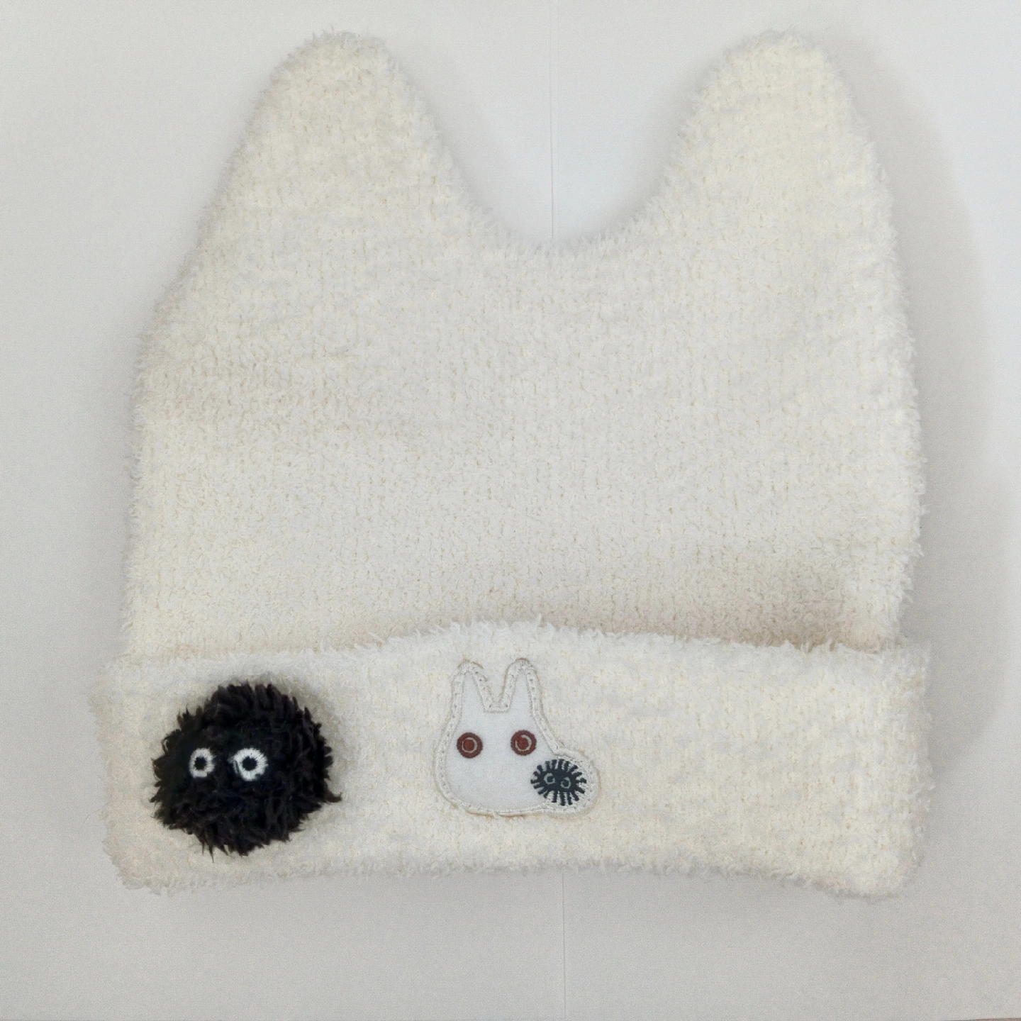 となりのトトロのニット帽子です ・カラー:オフホワイト ・素材:ポリエステル100% ・耳付きデザイン ・前面にトトロとまっくろくろすけの刺繍 ・中国製 どんぐり共和国で購入したとなりのトトロのニット帽子です。 サイズは50〜54くらいだと思われます。 ニットなので頭の大きさにもよりますが3歳くらいまでは使用できそうです。 1歳くらいの時に買って少し大きかったので仕舞ったまま忘れていました笑 もう、サイズアウトして被れないので出品します🤣 ほぼ未使用です😅 見た目綺麗ですが長期間自宅保管しています神経質な方は購入ご遠慮ください。 猫を一匹飼っています猫アレルギー等ある方はご購入お控えください。 中古品であることご了承ください 受け渡しはららぽーと横浜でもお受けしています、ご相談ください。