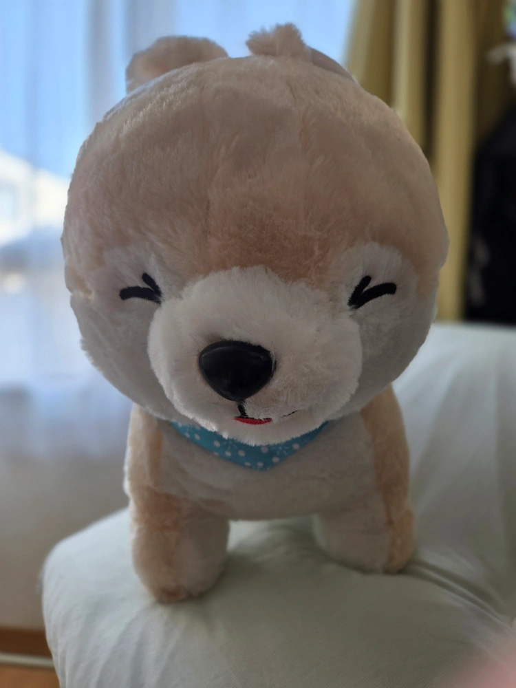 犬のぬいぐるみです ・色:ベージュ ・首に水色のバンダナ ・状態:良好 過去にUFOキャッチャーで取りました。