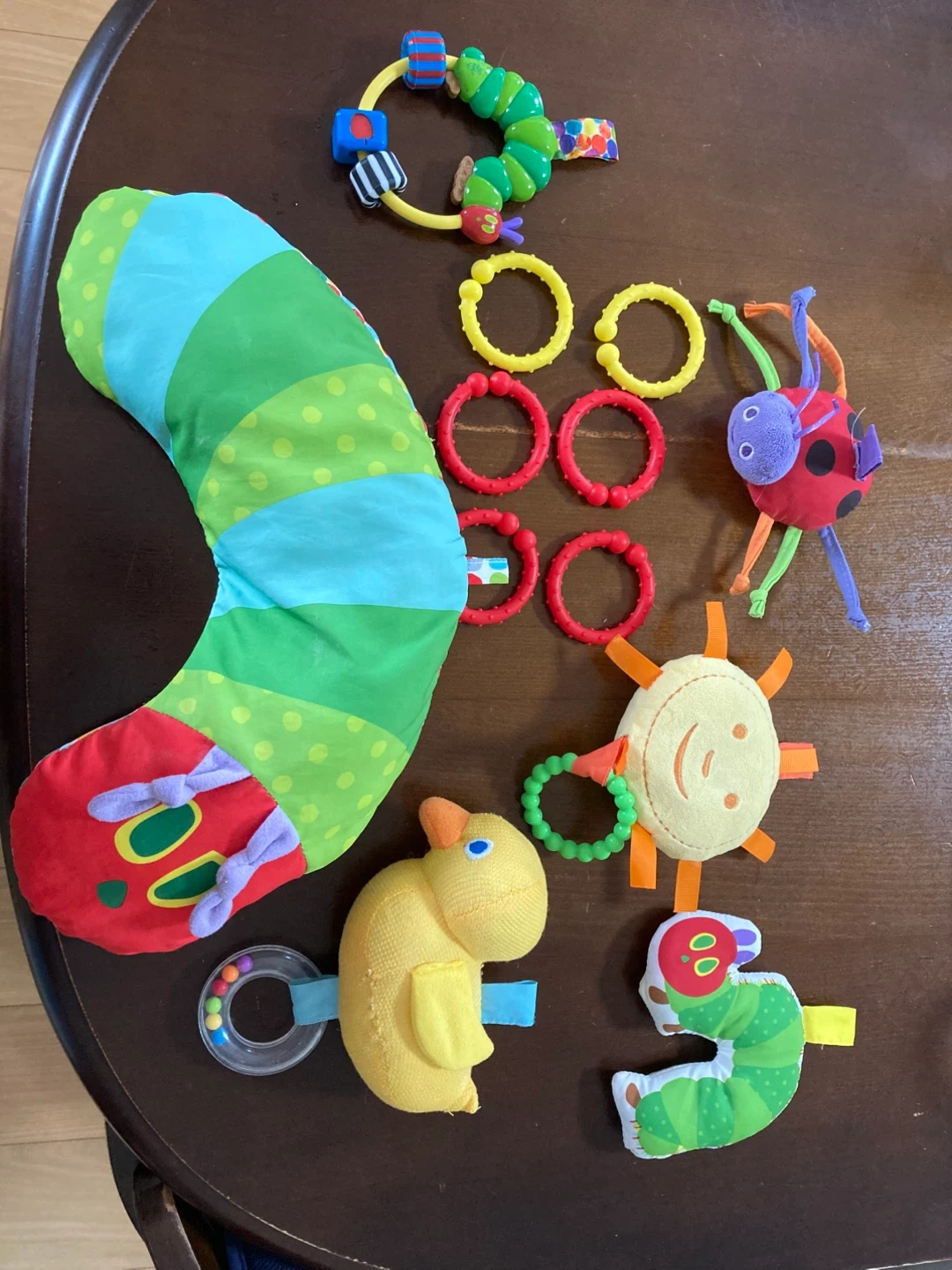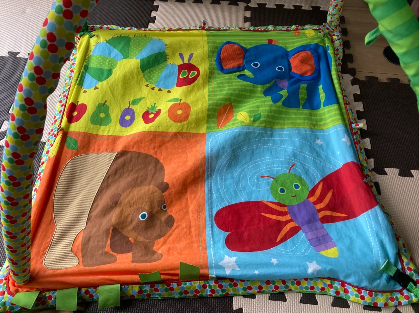 はらぺこあおむし アクティビティプレイジム定価 13200円 【情報】 商品:アクティビティプレイジム 対象月齢:0ヶ月〜 製品サイズ:約幅86×奥行86cm(マットのサイズ) 約高さ58cm(アーチ取り付け時) 製品重量:700g 【状態】 購入時期は約6年前です。 3人の子どもが一時的に使用しました。使用感があります。一部、おもちゃの音がならなかったり傷があるものがあります。 洗えるものは、自宅にて洗濯済みです。 【付属品】 説明書、おもちゃ各種 中古品であることご了承いただける方に購入いただきたいです。