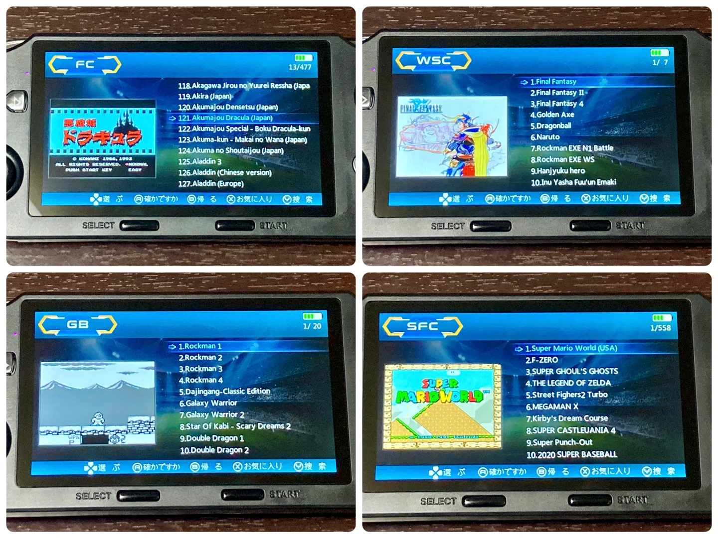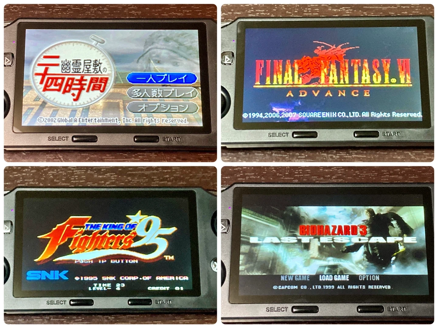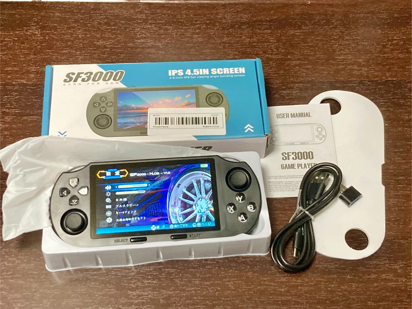 PSP風の見た目がかわいいレトロマシンです。 新品購入時からすでにかなりデータ入ってますが、内蔵SDカードにデータを足していくことももちろんできます。 日本語対応済み、日本語化してます。 ゲームボーイ、ファミコン、スーファミ、ゲームボーイアドバンス、PCエンジン、メガドライブ、アーケードゲーム、PSP、PS1、など幅広い互換性あり。 かなり分かりやすい操作画面なので、直感的に遊べると思います。 OSその他データ入りmicro SD付属。 購入時からたくさんゲーム入ってました。 自分でも手持ちのゲーム何本か追加しました。 お渡し前にゲームデータは削除するつもりですが、ご希望とあればそのままお渡しします。 遊び方などは触ってれば自然と分かると思いますし、ネットで検索すればたくさん情報出てきます。 かんたんに使い方などの説明であればご質問お答えしますが、基本的にご自身で調べられる方よろしくお願いします(PCくわしくない自分でもすぐわかりました)。 兄が勝手に大量にゲーム機を購入していたことが分かり、慌てて処分したく複数のゲーム機を出品しています。 常識の範囲であればお値引きもご相談承りますが、購入価格からかなり安く出品しているので大幅な値下げはごめんなさい、、、 ほとんどがほぼ新品ないし数回しか使っていないためご了承いただけますと幸いで す。