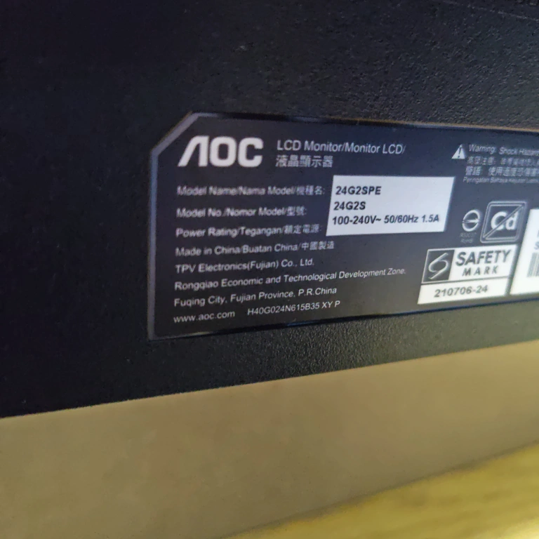 ご覧いただきありがとうございます! ■ 商品名 AOC 24G2SPE/11 23.8インチ ゲーミングモニター ■ 状態 動作確認済(完動品) 多少の細かい傷や汚れなどはあるかもしれませんが、使用一ヶ月未満の比較的美品かと思います。 元箱は多少傷や汚れありですが、発送には支障なく使用可能です。 ただ、完美品を求める方、神経質な方はご購入をお控えください。 ■ 付属品 ・ 元箱 ・ 電源ケーブル ・ DisplayPortケーブル ・ HDMIケーブル ・ DSubケーブル ・ オーディオケーブル ・ 説明書類 ※ ケーブル類は、一部未使用のものもございます。 ■ 特長・スペック ・ リフレッシュレート:最大165Hz(DP接続時)/144Hz(HDMI) ・ 応答速度:1ms(MPRT)/4ms(GtoG) ・ パネル:Fast IPS、高色域(sRGB125%、DCIP3 約87%) ・ AdaptiveSync対応でティアリング軽減 ・ フリッカーフリー、ローブルーモードで目に優しい設計 ・ ゲーミング機能充実:シャドウコントロール(暗所補正)、ゲームカラー、MBR(残像軽減)、クロスヘア機能など搭載 ご購入後のキャルセルは受け付けておりませんので、よくご確認頂き、お間違えのないようにご購入をお願いします。 また、商品すり替え防止などの為、返品や交換は致しかねますのでご了承下さい。宜しくお願い致します。 【受け渡し場所】 場所を設定させて頂いておりますが、持ち運びが大変な方はご自宅付近までお持ちすることもできる場合もございますので、お気軽にご相談頂ければと思います。