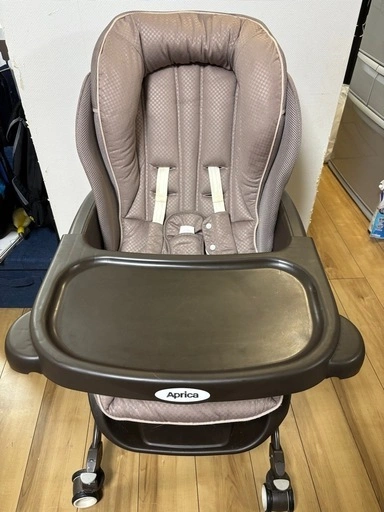 アップリカのユラリズム 電動タイプです。 付属品について: ベルト、付属テーブル、クッション、テーブル、ACアダプター あり 説明書 なし メーカーサイト: https://www.aprica.jp/products/discontinued/detail/highlow/yuralism_auto_hidx/ 注意: 7年前に購入しました。 定価5〜6万円ほどです。 離乳食時にも短期間ですが使用していた為、 ベルト等一部分シミがあります。 使用感はありますので、ご注意ください。 寝返りするまでのお昼寝場所や家事の間待たせておくのに重宝しました。オートで揺らしておくとそのまま寝てしまうことも多かったです。 動作確認: 電動スイング、オルゴール すべて問題なく動きます。 取りに来てくださる方優先で考えていますが、場所によっては車でお運び可能です。ご相談ください。