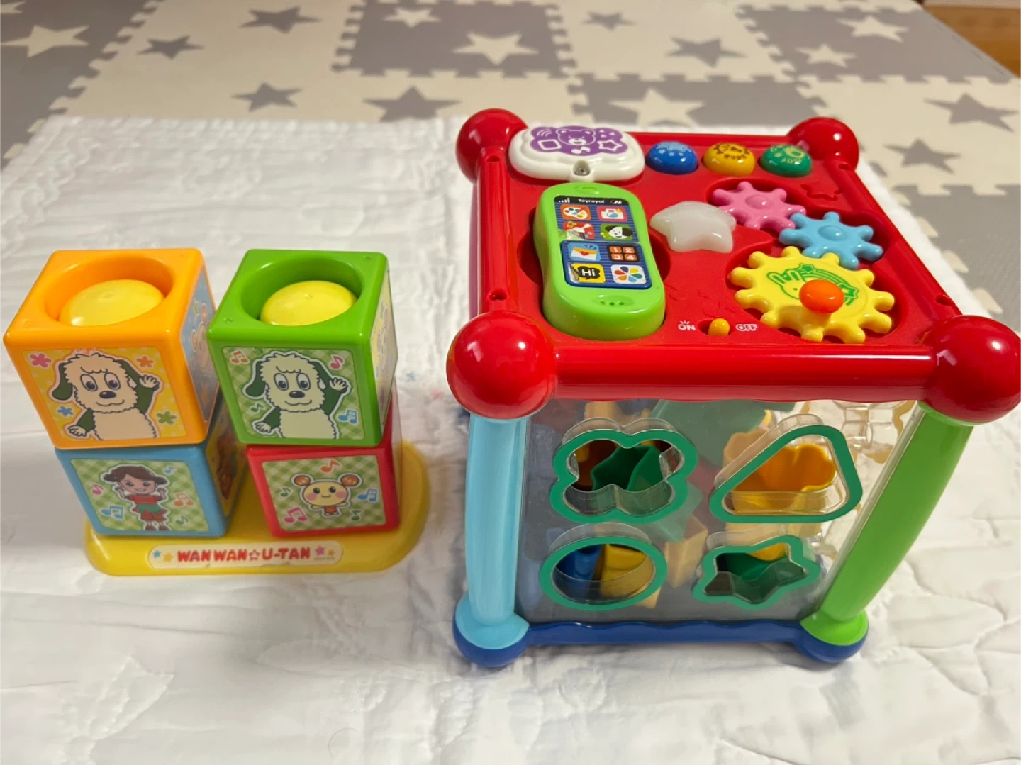 知育玩具です ・使用感あり ・ブロックと本体のセット ・シール部分が少し剥がれかかっている箇所あり 中古品であることご了承ください