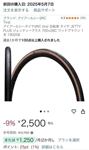 IRC JETTY PLUS 700×28C ウッドブラウンのタイヤ2本セットです。 2025年5月に新品購入後、4ヶ月で350km弱走行。 パンク歴や目立つ傷はありません。 バイクは屋内保管、タイヤ取り外し後は洗浄しラップ巻き、ジップロックへ入れ冷暗所保管していました。 さらに太いタイヤへ変更し予備として保管していましたが、出品いたします。 バラ売りや値下げはご遠慮ください。 ご希望の方はお気軽にご連絡ください。