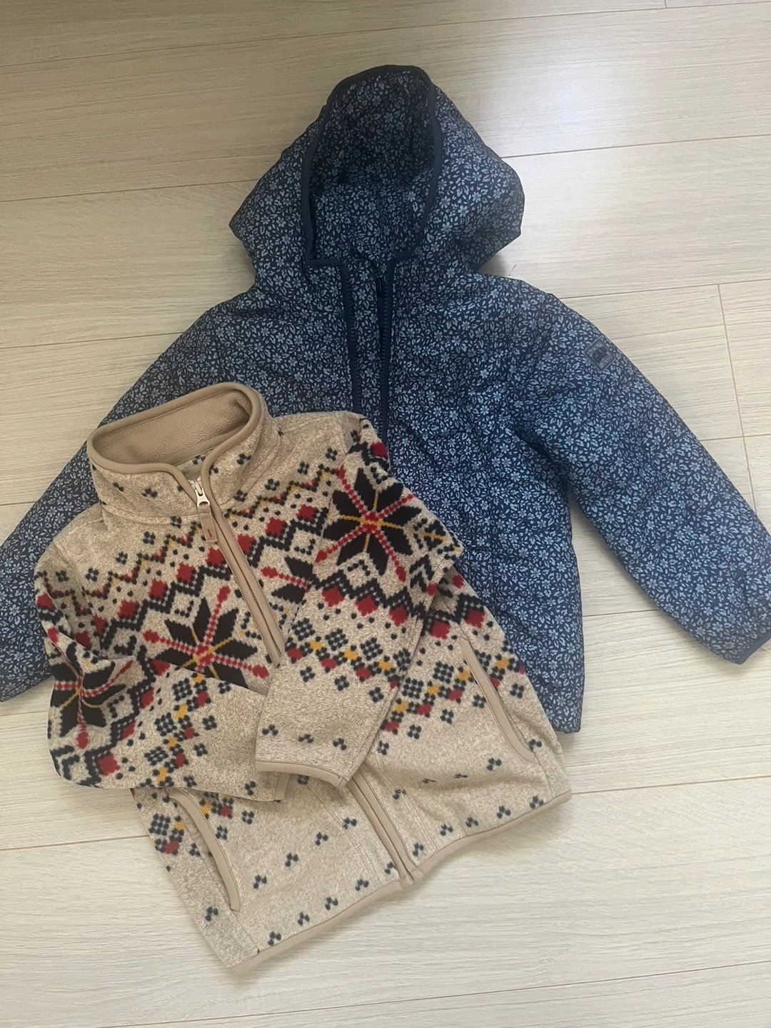 ブルーの花柄はギャップ ベージュのフリースはユニクロです ギャップのは袖口に汚れがあります