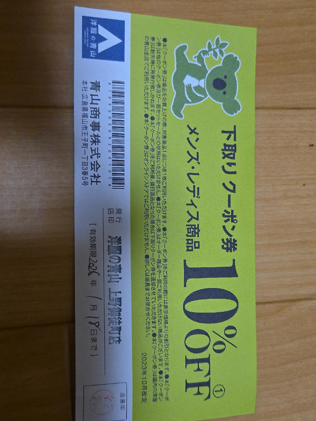 洋服の青山のクーポン券です 【情報】 ブランド:アオヤマ 種類:10%OFFクーポン券 【有効期限】 2026年1月18日まで 中古品であることご了承ください