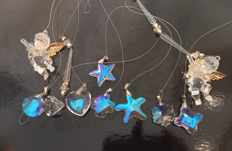 エンジェル型のアクリルチャームと多様な形状のアクリルパーツのセット。 写真をタップすると全体の大きさが見られます。 天使2個と他8個の10個セット アクリル製 オーナメント。サンキャッチャーとしても使えます。アクリルですが日に当たると結構キラキラ光り綺麗です。 長さはチャームを含むテグスの長さで概寸です。 天使 50cm/30cm 写真③38cm ④32cm ⑤38cm ⑥46cm ⑦42cm ⑧48cm ⑨30cm ⑩46cm 画像の枚数制限で載せられませんでしたが、涙型のチャームのみ1個オマケにお付けします。 #オーナメント #サンキャッチャー #アクリル #モビール
