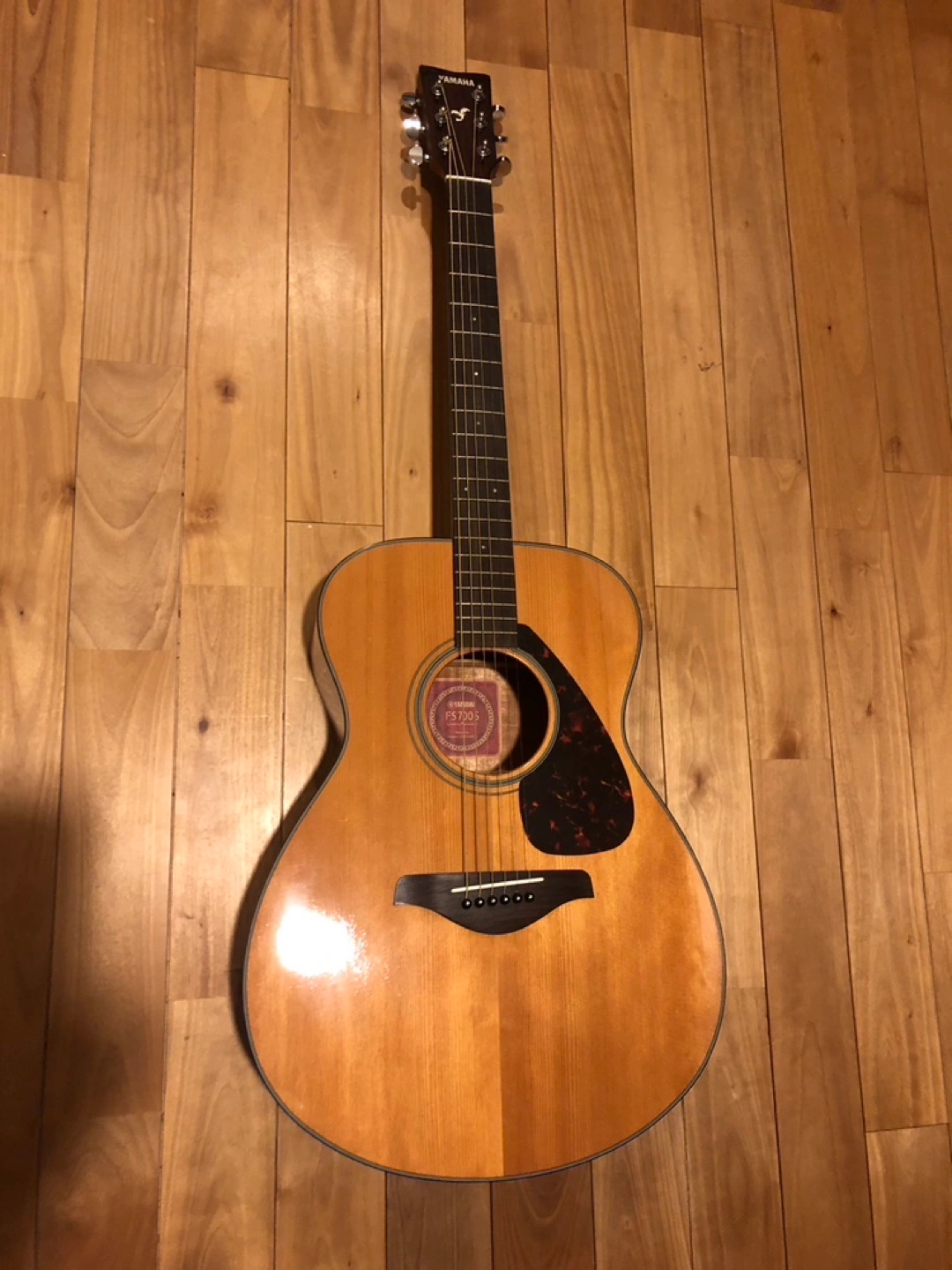 YAMAHAのアコースティックギターです。 カポタストと替えの弦、簡易的な組み立て式スタンド、YAMAHAの布製ケース付きです。 不要なものがございましたらコメントにてお申し付けください。 替えの弦は箱が空いていますが出していませんので未使用です。 数箇所に目立たない程度の傷はございますが、演奏には問題ございません。