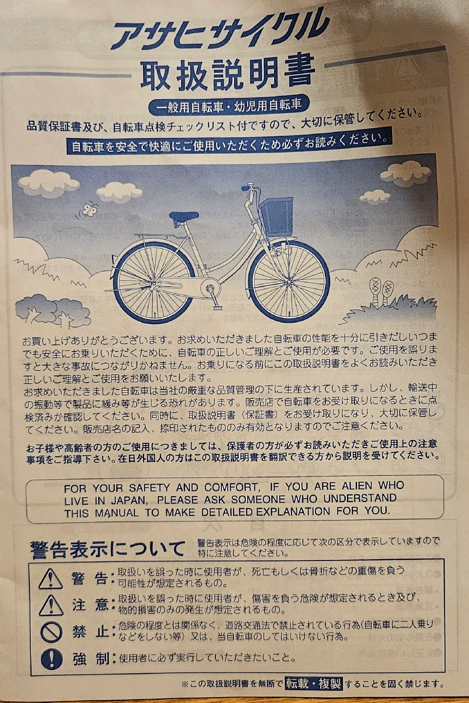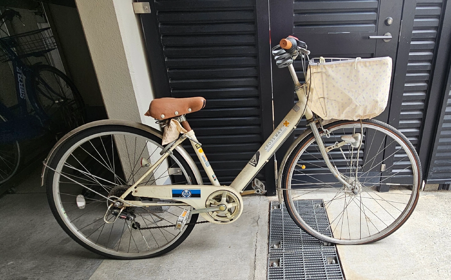 アサヒサイクルの自転車です。 6段ギア オートライト 27インチ キズ・汚れ・サビあり タイヤがパンクしてから駐輪場(ほぼ室内)に置いていました。サドルやカゴはキレイなので修理すれば乗れると思います。 中古品であることご了承ください