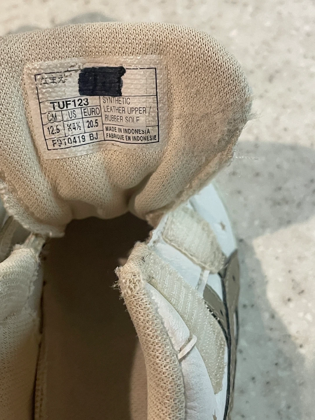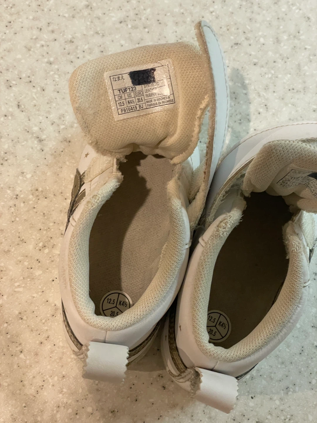 アシックスのスニーカーです 【情報】 ブランド:アシックス 型番:TUF123 サイズ:12.5cm 【状態】 使用感あり、小さなキズあり 記名(目隠し)あり 中古品であることご了承ください