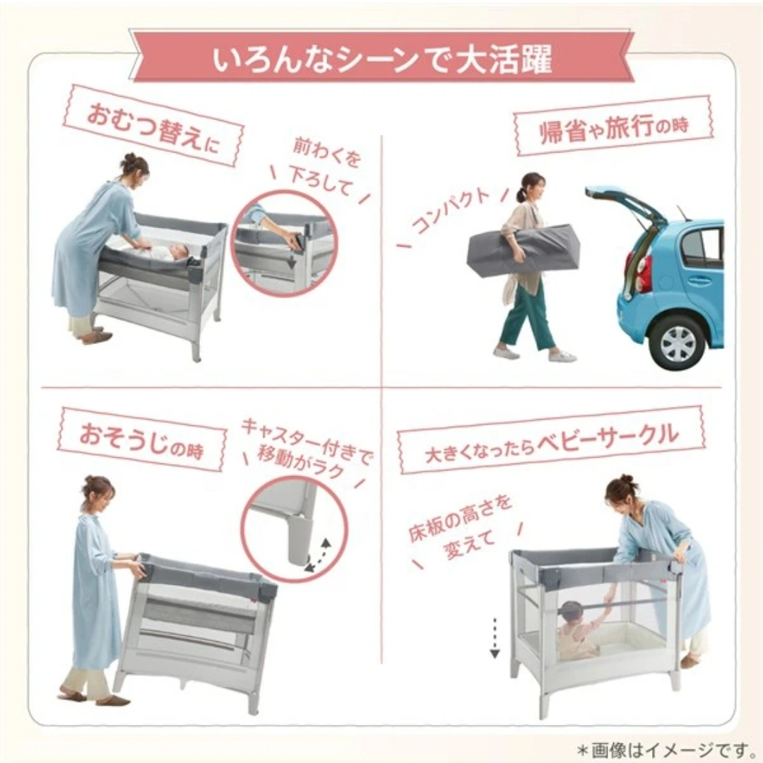 3ヶ月程で使用しなくなったので、比較的綺麗な状態かと思います。 ベッド本体までに渡るようなオムツ漏れや吐き戻しはありませんでした。 収納する際に全体を拭きあげたのですが、内側1箇所うっすらと染みになってしまいました。(写真6枚目) 収納袋に入れた状態で猫が入らない場所で保管しておりますが、猫を飼育していることをご承知おきください。 お取引について 平日は15時頃が都合つきやすいです。 土日の場合はご相談ください。 育児中のため、大崎郵便局近くの自宅 まで取りに来て頂きたいです。 ご不明点などお気軽にお問い合わせ下さい。 ご検討よろしくお願いいたします。