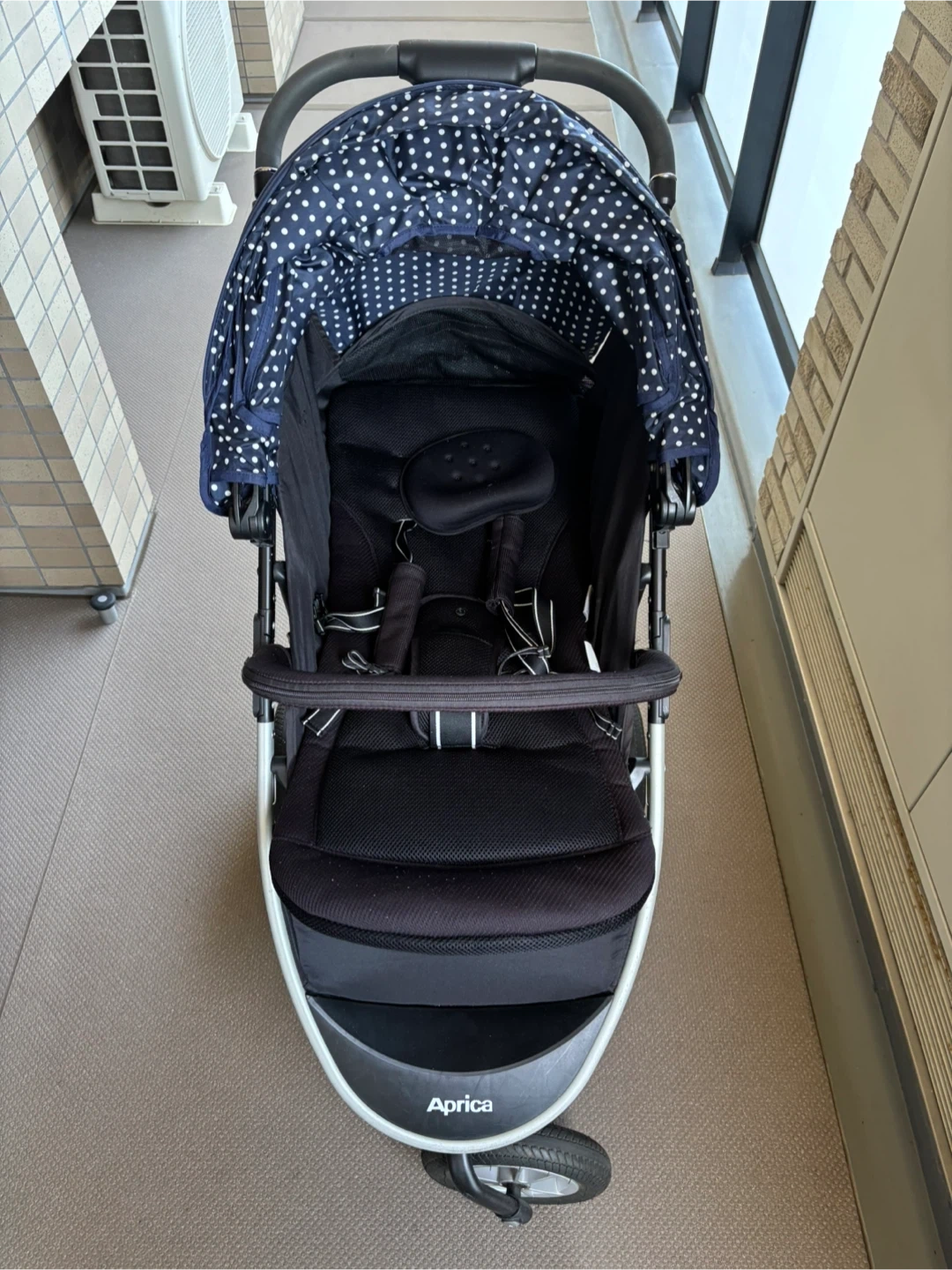 アップリカのスムーヴで 、新生児から使えます。以下の状態をご確認後、ご納得いただいた方にお願い致します。 ・説明書なし(ネットでご覧ください。) ・ベビーカーのシートの足元あたりに起毛あり ・カゴ部分の手前側の板が折れていますが、物入れるのには問題ありません。 ・タイヤの前輪が後輪より、たまに空気が抜けることがある(たまに空気をいれる必要あり、日常の走行に問題はなし) ・カラー:ネイビー、内側は白のドット柄 ・全体的に使用感あり 中古品であることご了承ください。 何かご質問があれば遠慮なくご連絡ください。 引き渡し場所:三鷹駅北口(マイカリー食堂辺り)、吉祥寺北口(ドンクの辺り) ベビーカーはそのままの状態でお渡し致します。