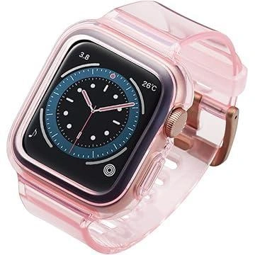 Apple Watch SE2、SE、Series 6、5、4 [40mm]用のクリアバンドケースです。※Apple Watch Series 5 セラミックケースには対応しません。 程よい柔らかさで装着感が良く、汗や水に強く、耐衝撃性に優れたTPU素材を採用しています。 全面保護フィルムや、ガラスフィルムなど、厚みのあるフィルムを貼っていても装着可能です。※エレコム製フィルムのみ保証いたします。 フレーム部は凸形状で周辺を囲むことにより液晶部への不意の接触を保護し、柔軟なTPU素材の本体部が衝撃を緩和します。 ご希望の方はお気軽にご連絡ください。