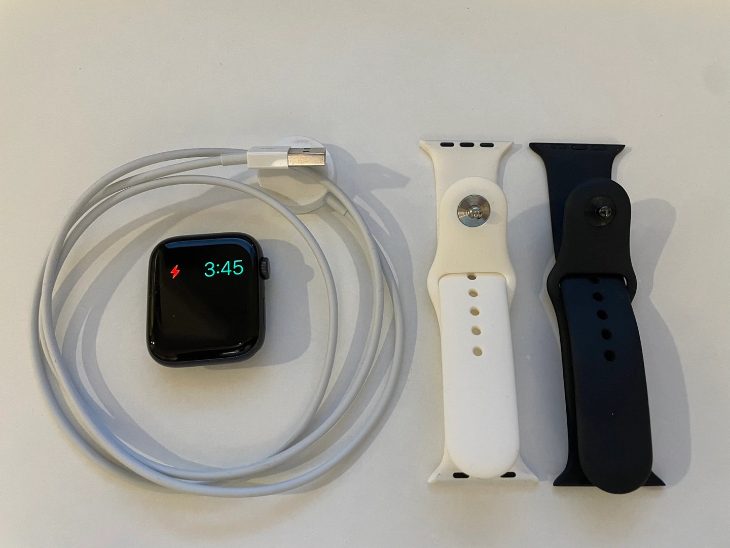 アップルウォッチ SE(44mm) A2252 本体+バンド二つ+専用充電器 Apple Watch SE 32G 44mm stainless steel プレゼントでもらいましたが、 職業の特性上あまり使いませんでした。 キズが全然なく状態がとても良いです。 44mmで女性に使いやすい 本体と接続可能なバンド二つ(白、黒) そして専用充電器までセットです。 初期化完了 アップルのiPhone専用スマートウォッチ お手持ちのiPhoneと紐付けをし、 iPhoneにかかってきた着信への応答、 通知確認等、便利な多数搭載。 Apple Pay,FeliCa,Suicaタッチ決済 可能