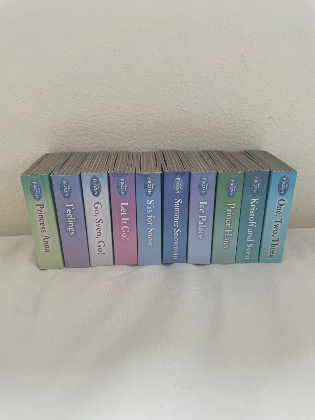 ディズニー映画『アナと雪の女王』のミニ絵本9冊セットです。 小さな子供も楽しめるように、1冊につき1つのテーマで短いお話が描かれています。 タイトルは以下の通りです。 ・Princess Anna ・Feelings ・Go, Sven, Go! ・Let It Go! ・One, Two, Three ・Kristoff and Sven ・Prince Hans ・S is for Snow ・Summer Snowman ・Ice Palace 目立った傷や汚れはなく比較的綺麗な状態です。 自宅保管のため、ご理解いただける方のご購入をお願いいたします。