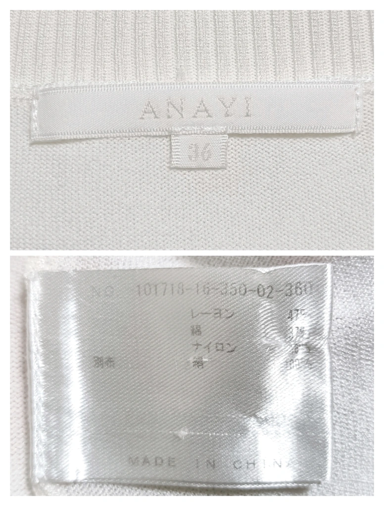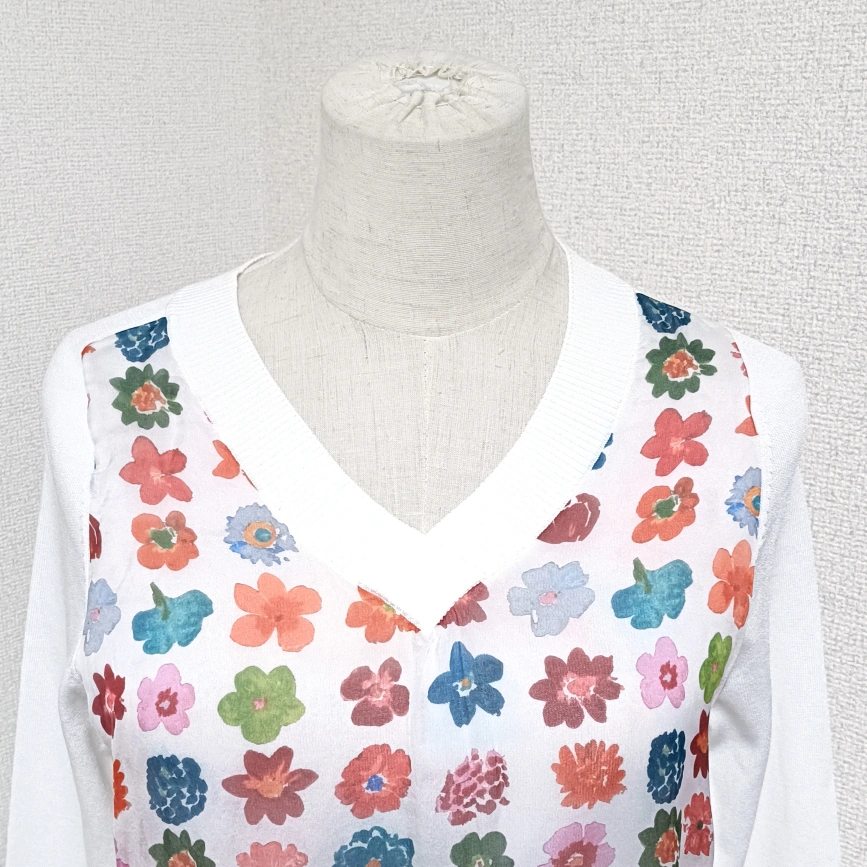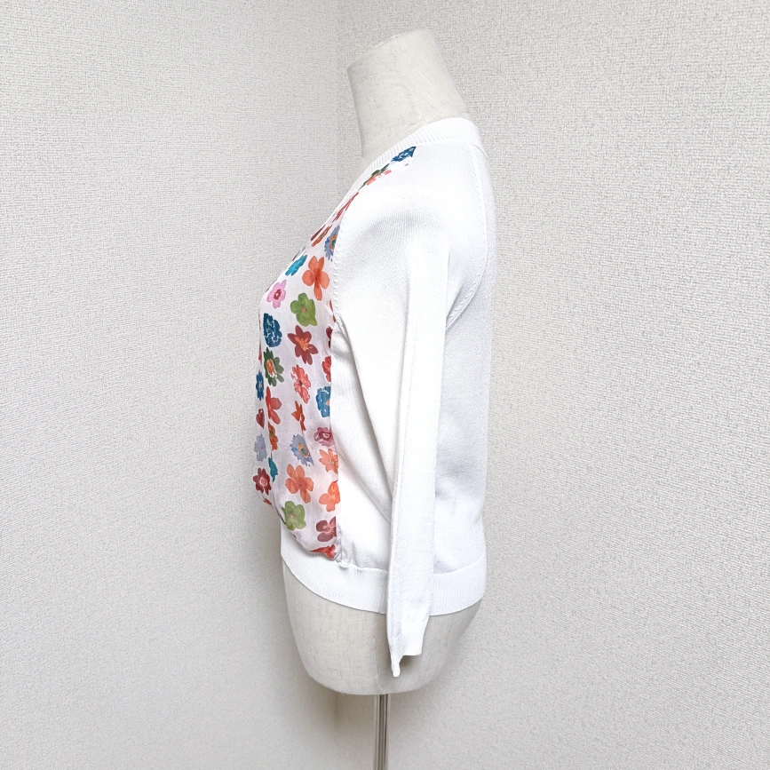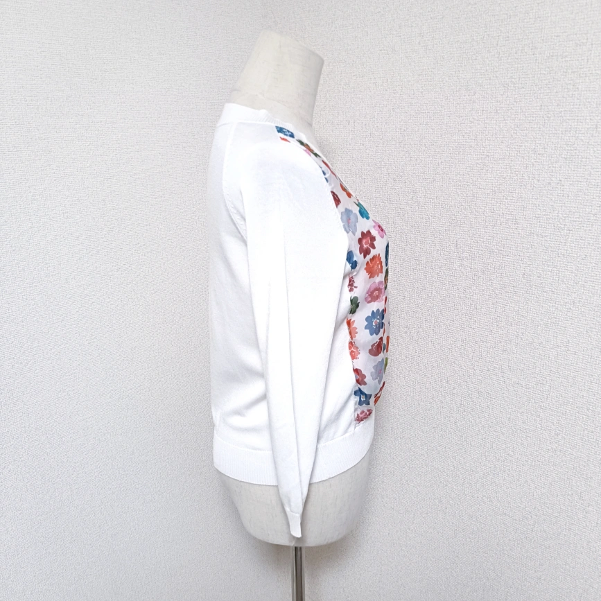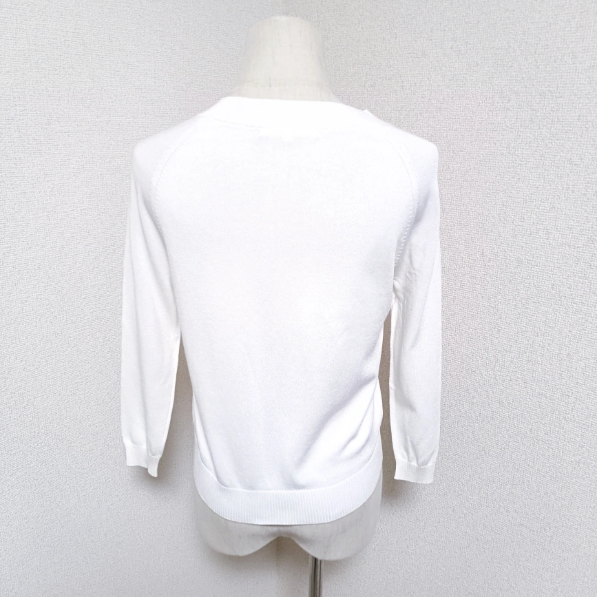 □商品名□ 美品 Vネック長袖ニット トップス 花柄レース ホワイト 36 レディース ANAYIのVネック長袖ニットトップスです。 シンプルなVネックデザインに、花柄レースが上品なアクセントを添えた一枚。 透け感のあるシアー素材が涼しげで、春夏にぴったりのアイテムです。 オフィスシーンにもカジュアルなスタイルにも合わせやすく、幅広いコーディネートを楽しめます。 ホワイトカラーはどんなボトムスとも合わせやすく、ワードローブに一枚あると重宝します。 #joymaxお得なプロフへ #ゆうの古着屋さん_レディーストップス □ブランド□ ANAYI アナイ □表記サイズ□ 36 Sサイズです □実寸サイズ(cm) □ 【床置きサイズ】 着丈:48 身幅:44 袖丈:53 ※実寸につきまして多少の誤差はご了承ください。 ※表記サイズだけではなく実寸のサイズをご確認ください。 □カラー□ ホワイト 白色 □素材□ レーヨン47% 綿37% ナイロン16% 別布:絹100% □コンディション□ 目立った汚れやダメージなど特にございません。 ※汚れはできる限り写真にて掲載しております。まずは画像をご確認ください。 出品一覧→ #joymaxお得なプロフへ どうぞよろしくお願い致します。 □商品管理番号□ P5-M-4357