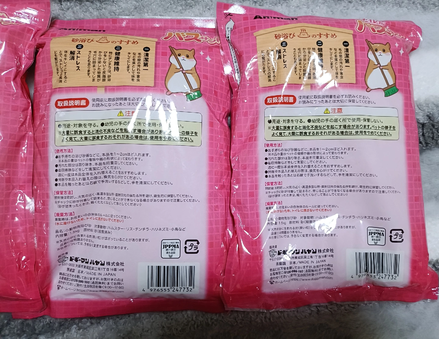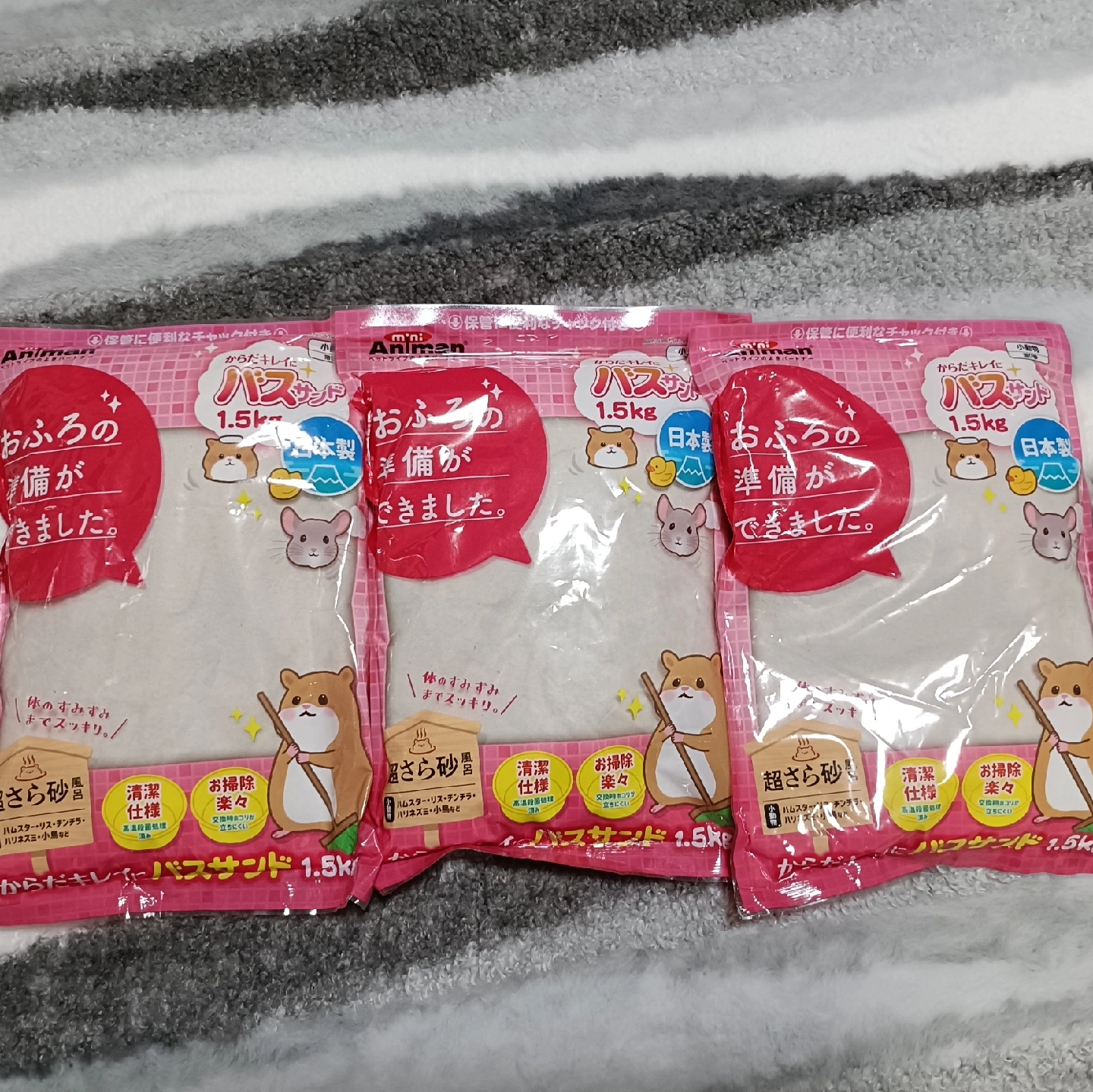⟡.·*.··············································⟡.·*. アニマンのハムスター用 バスサンド1.5kg × 3袋 + (使用)使いかけの2袋 ブランド/アニマン 商品/ハムスター用バスサンド 容量/1.5kg × 3袋 + (使用)使いかけ2袋。 ※ 使いかけの2袋の残りは、画像有り。 ハムスター飼っている方など 必要な方に。 宜しくお願い致します。 ⟡.·*.··············································⟡.·*.