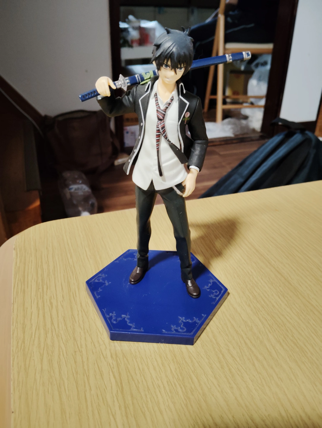 ・アニメキャラクタのフィギュア ・制服姿 ・剣を持つ ・青い台座