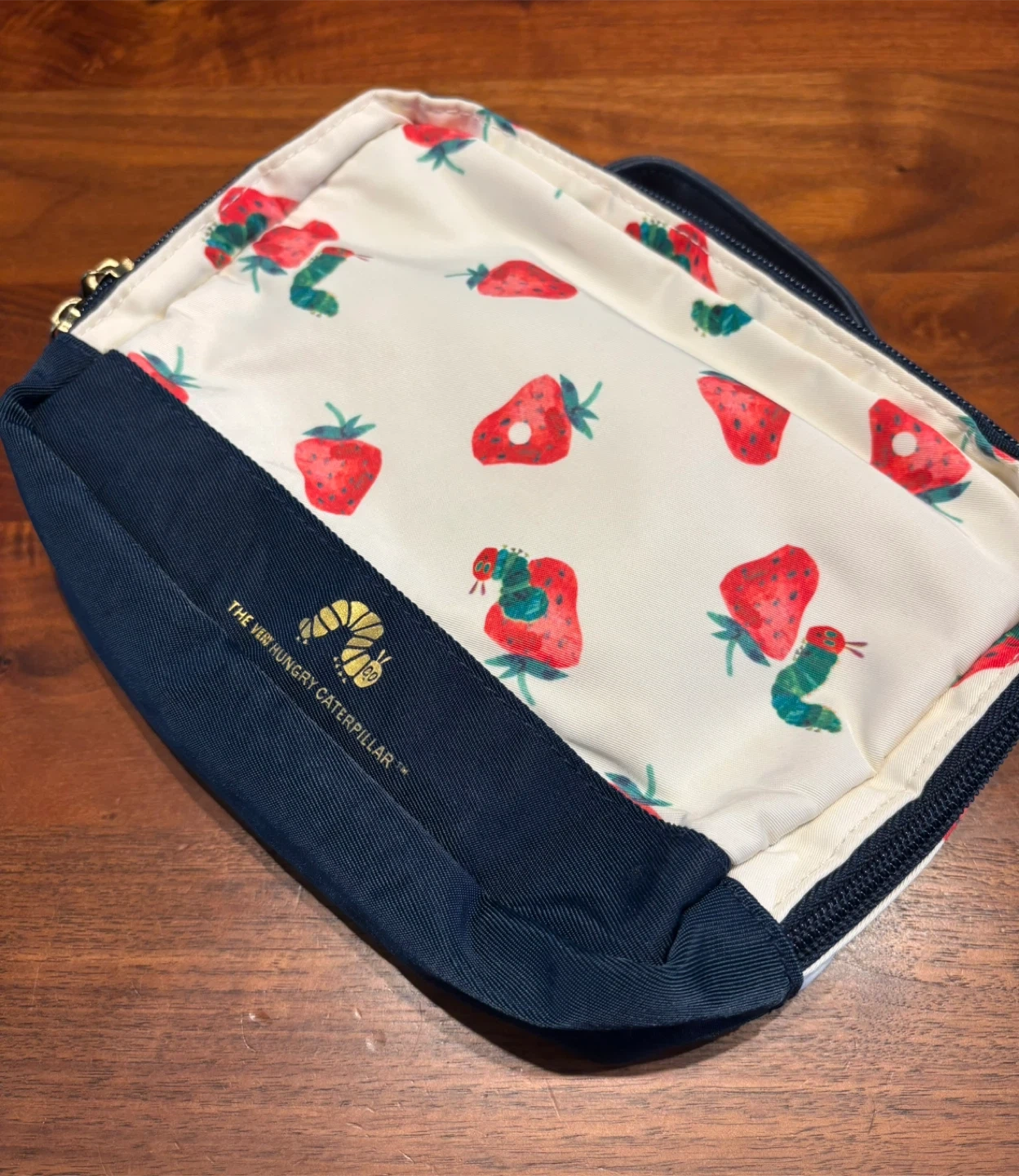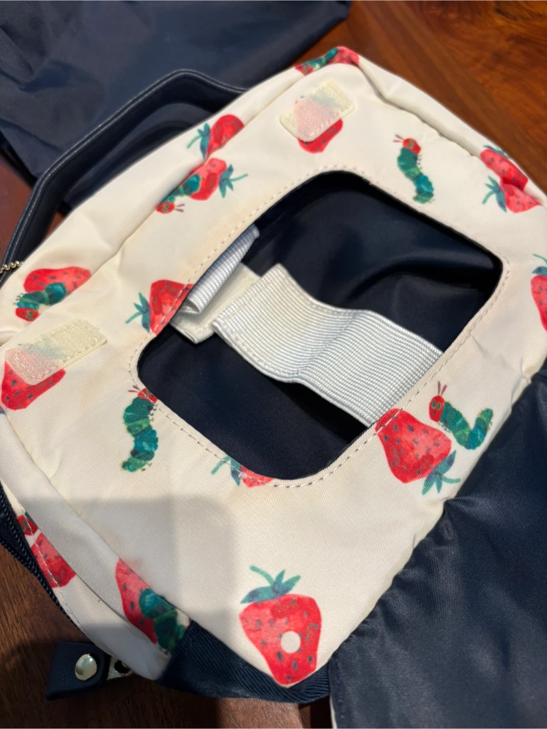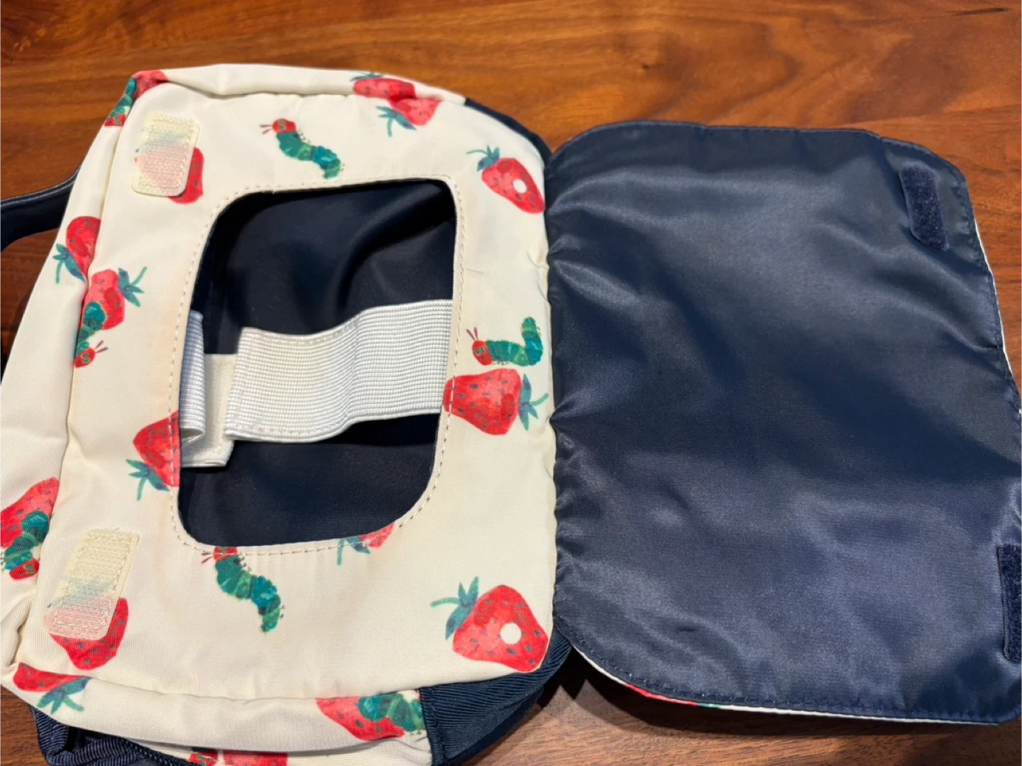 アフタヌーンティーと、はらぺこあおむしのコラボおむつポーチです 【情報】 ブランド:アフタヌーンティー キャラクター:はらぺこあおむし 色:白、紺色 【状態】 ・全体的に使用感あり ・内側にポケット、一回り小さい折り畳みポーチがあります ・おむつ3枚くらいとお尻拭きが入ります 中古品であることご了承ください