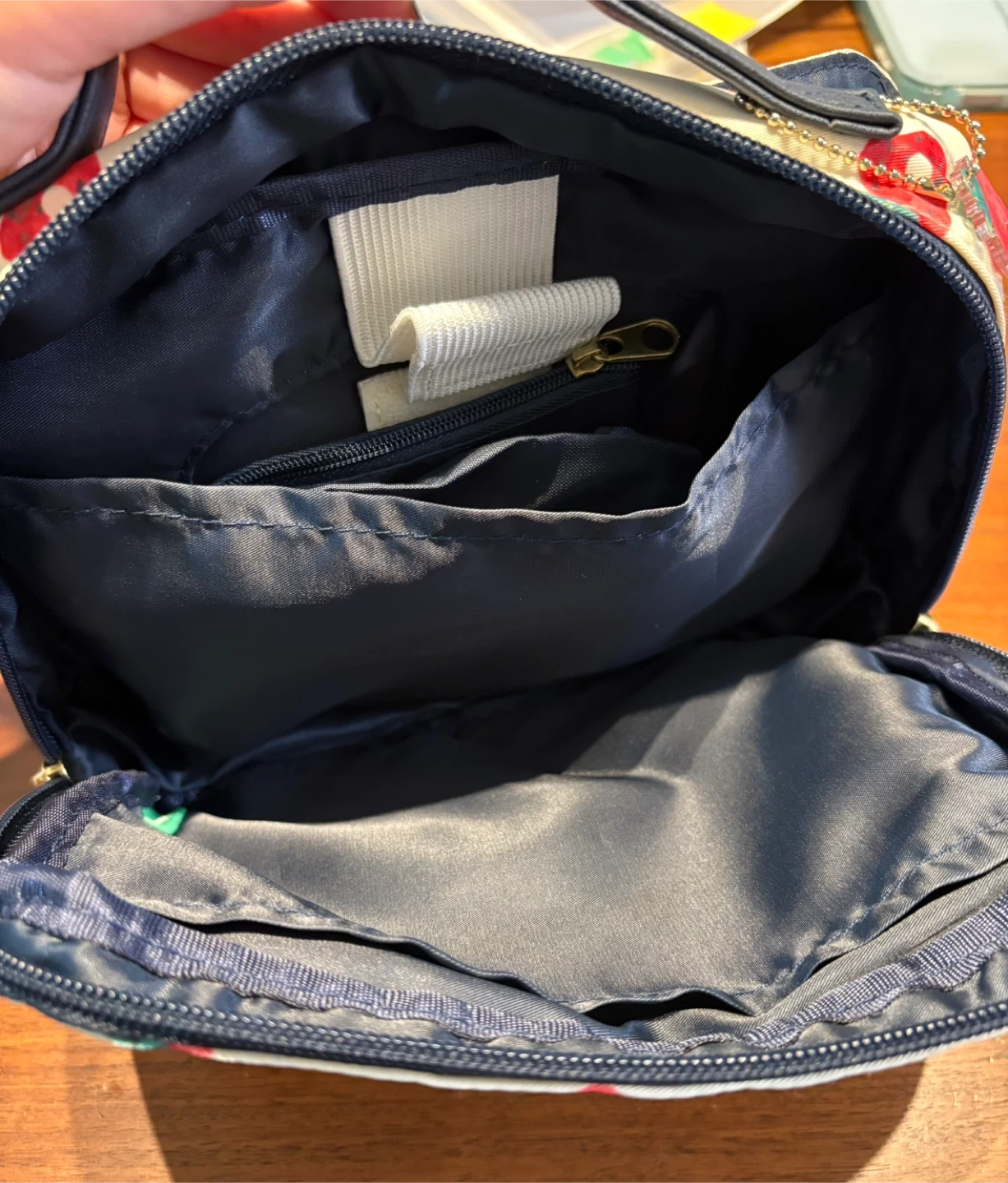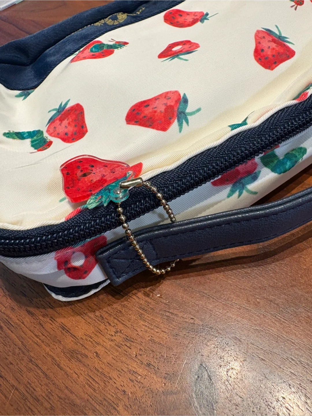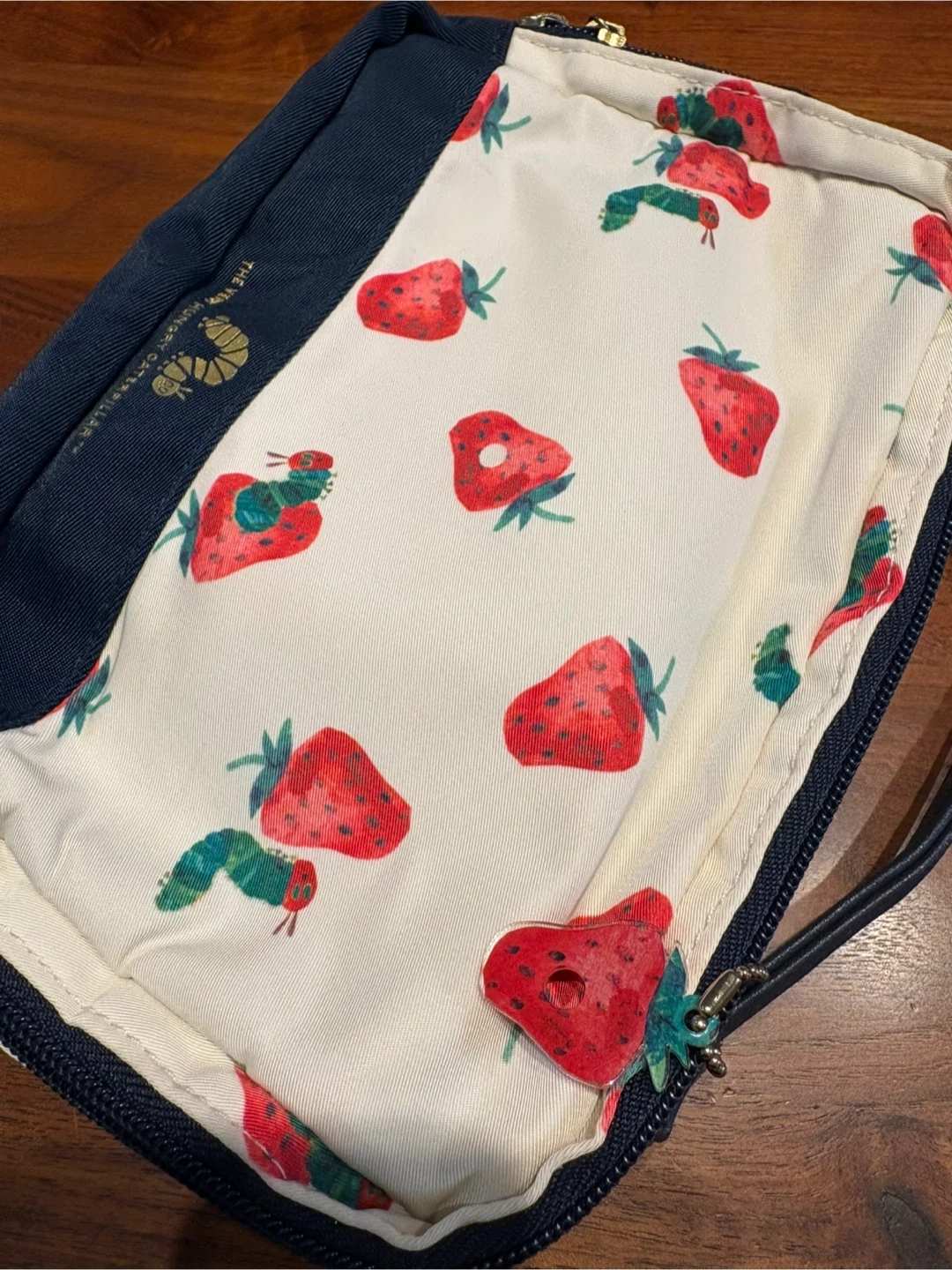 アフタヌーンティーと、はらぺこあおむしのコラボおむつポーチです 【情報】 ブランド:アフタヌーンティー キャラクター:はらぺこあおむし 色:白、紺色 【状態】 ・全体的に使用感あり ・内側にポケット、一回り小さい折り畳みポーチがあります ・おむつ3枚くらいとお尻拭きが入ります 中古品であることご了承ください