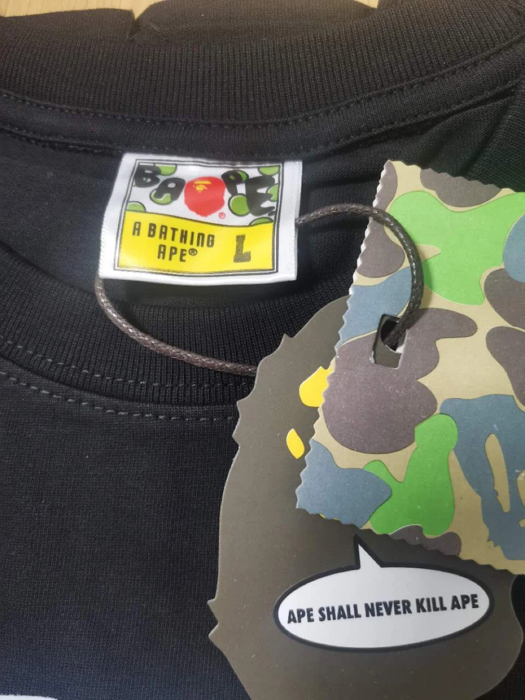 新品未使用,本物です! ア ベイシング エイプ(A BATHING APE ) Tシャツ *海外版 並行輸入商品, *タグ付きの100%正規品 生地は柔らかく普通くらい厚さ。 さらりと高級感のある仕上がり。 [平置きにて採寸] 身幅:胴中央 着丈:背面タグ上端~背面裾下端 肩幅:左右肩トップ縫目 気を付けて採寸していますが、 素人故多少の誤差はご了承下さい。 身丈72cm バスト56cm 肩幅50cm 袖丈21cm 並行輸入品についてご理解頂けない方、完璧な状態を求めている方、のみご検討お願いします,ご覧いただきありがとうございます。