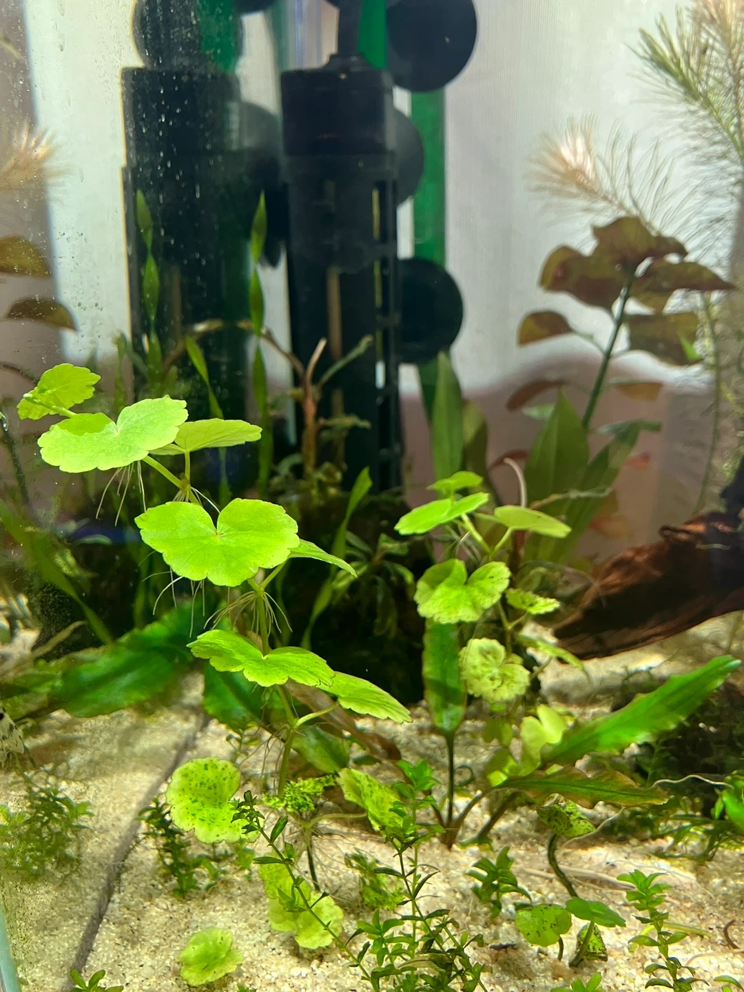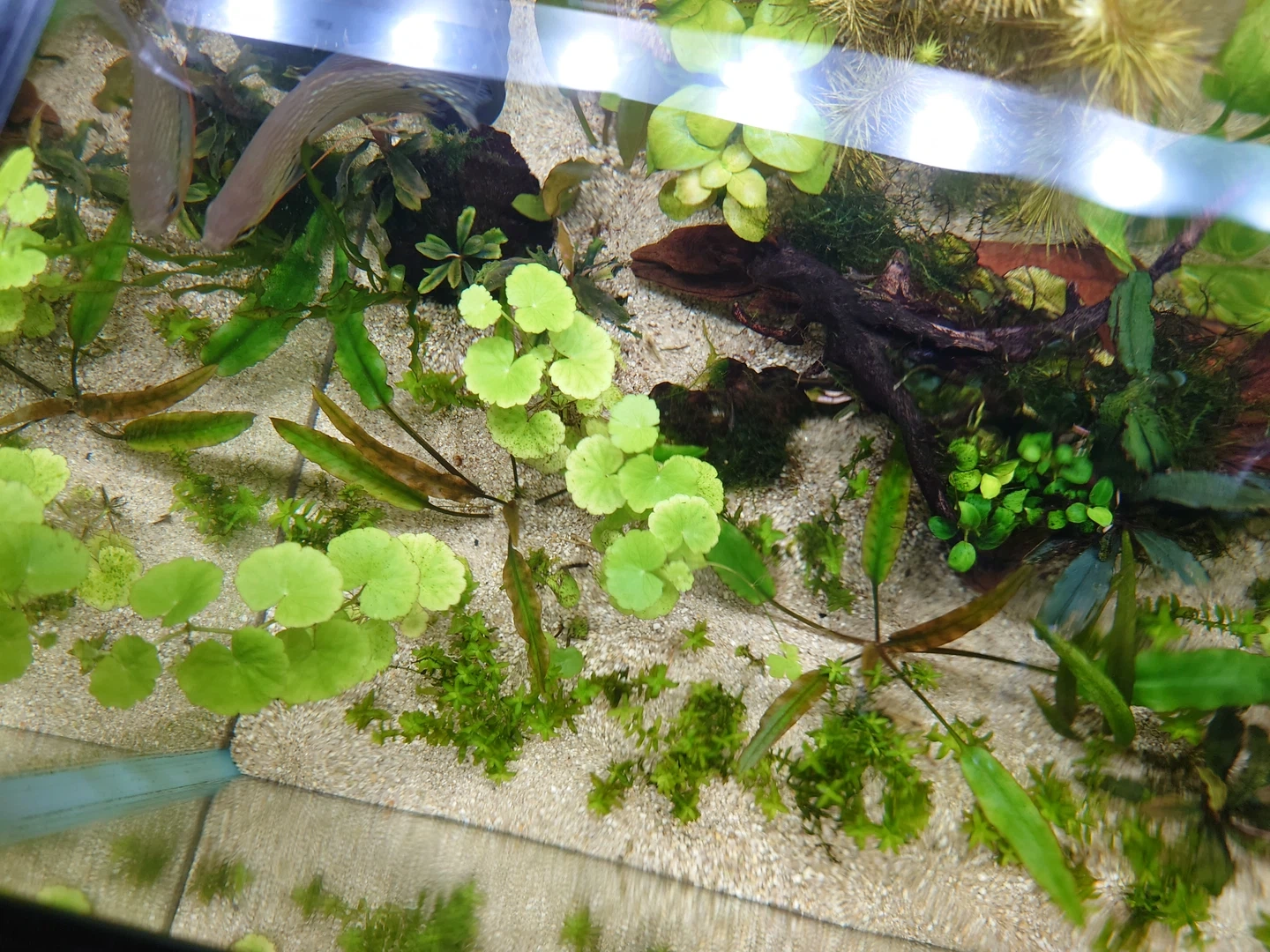 個人で育成したアマゾンチドメグサ(水中葉)です。 育成環境 45cm水槽 低床:ADA砂(コロラドサンド) pH:約6.6 照明:Tetra 10時間/日 CO2:添加なし コケ取り生体:オトシンクルス、ヤマトヌマエビ、ミナミヌマエビ 内容量 1本につき、葉3,4枚程度 砂に埋めているため、上向きに育っています。 円形の葉をつけ、蔦が這うように伸びる水草です。群生させると独特な自然感を演出できます。丈夫で育て易く、幅広い環境で育成できます。 ご購入後にトリミングを行い、キッチンペーパーに包みチャック付き保存袋に入れ、お渡し致します。 多少の穴あきやコケ等がある場合がございます。