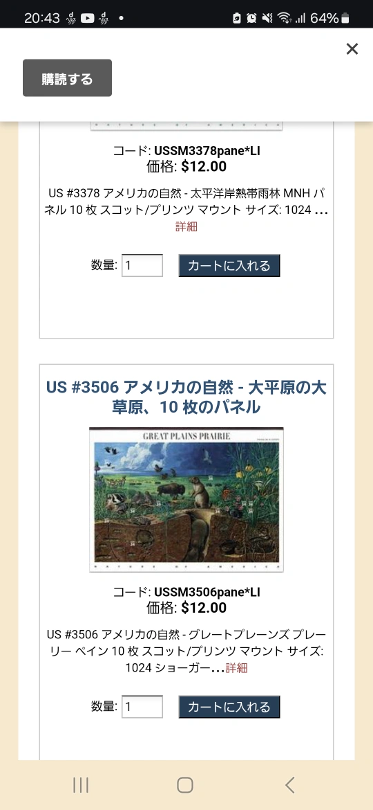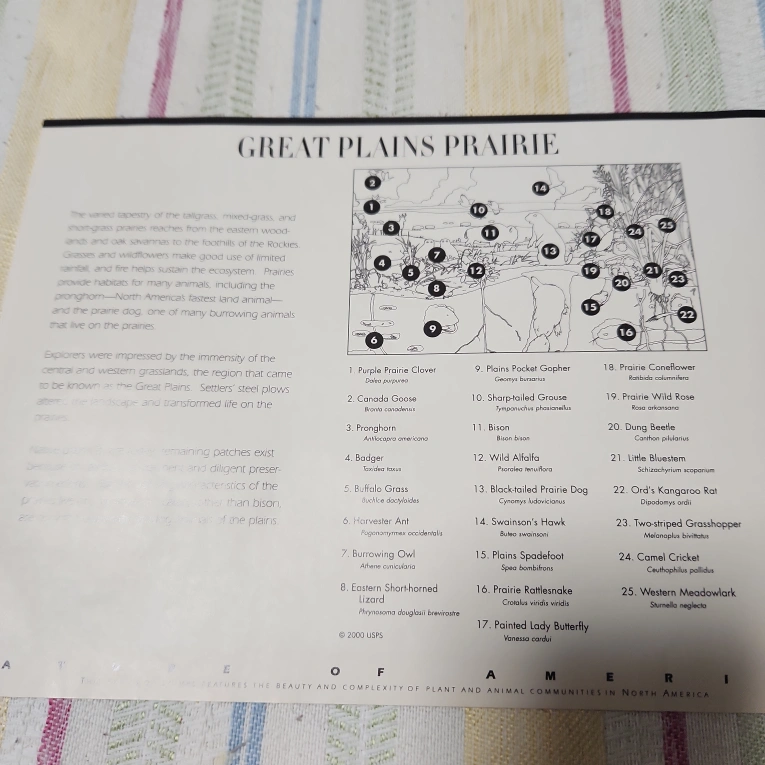 アメリカの自然 大平原の大草原 10枚のパネル 2001年当時住んでいたアメリカで購入しました。未使用の記念切手です。