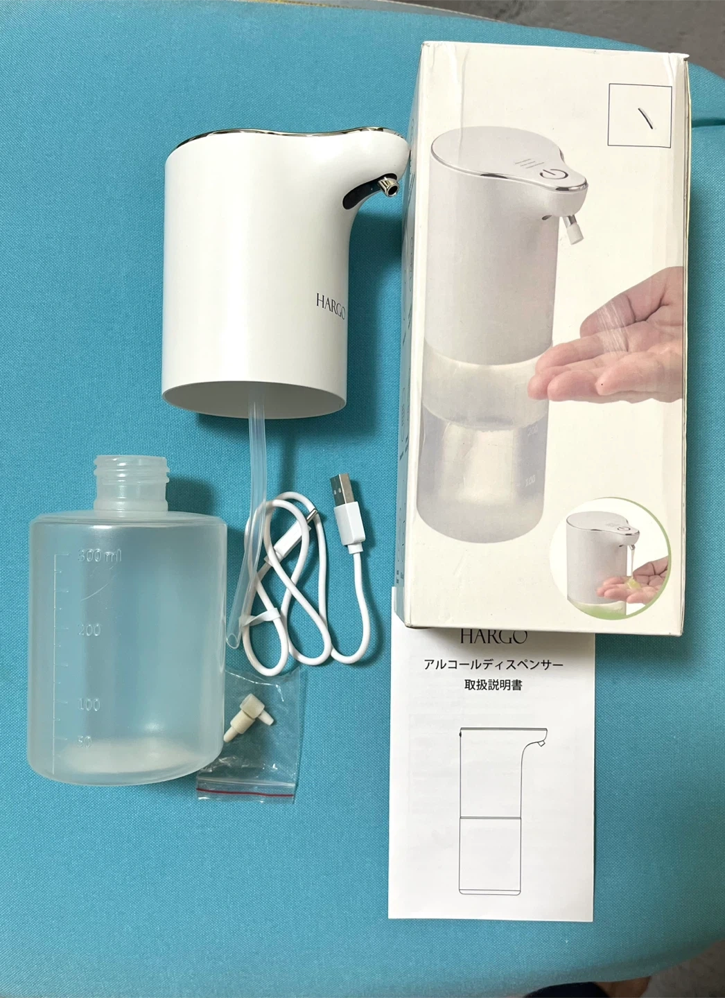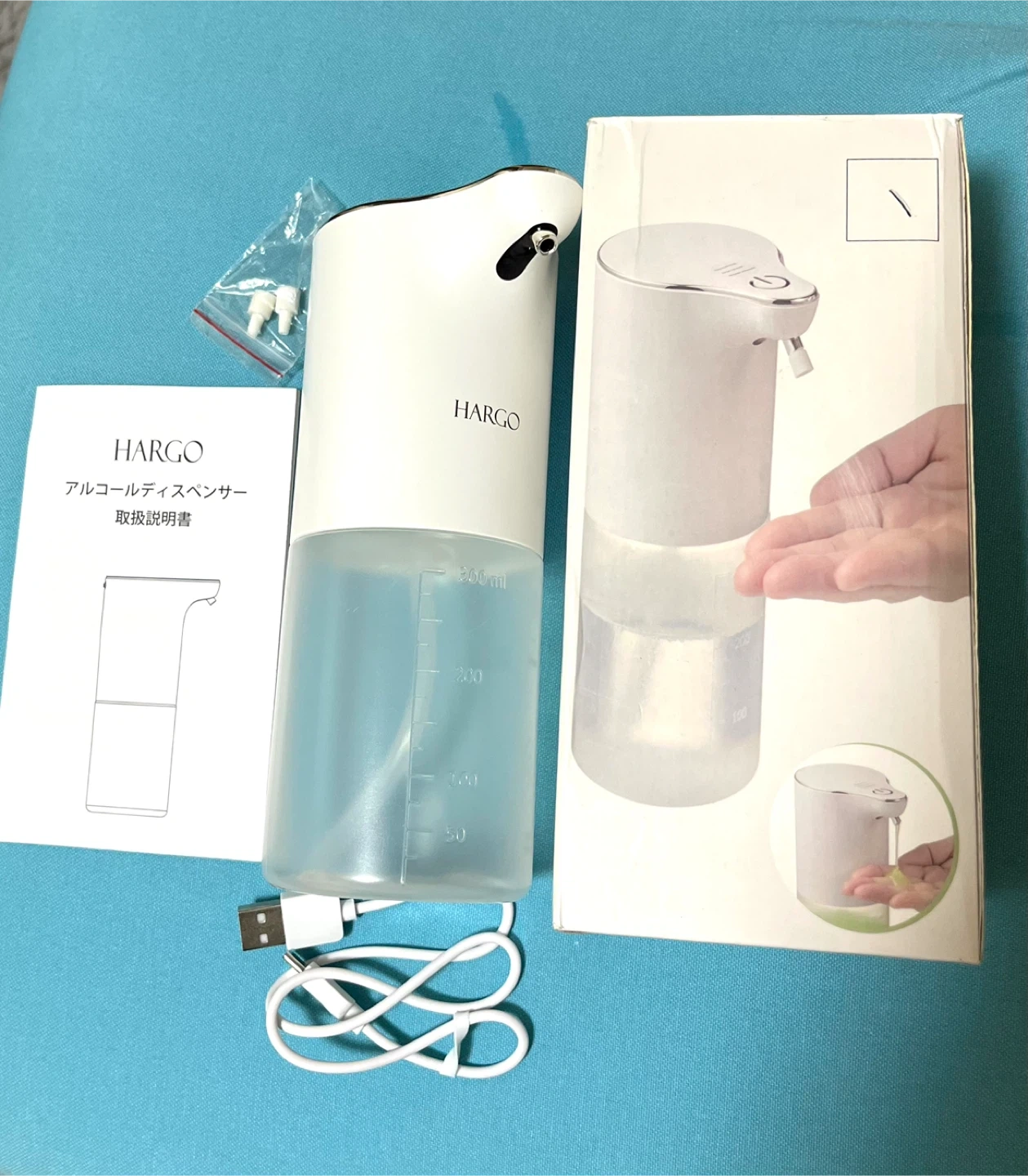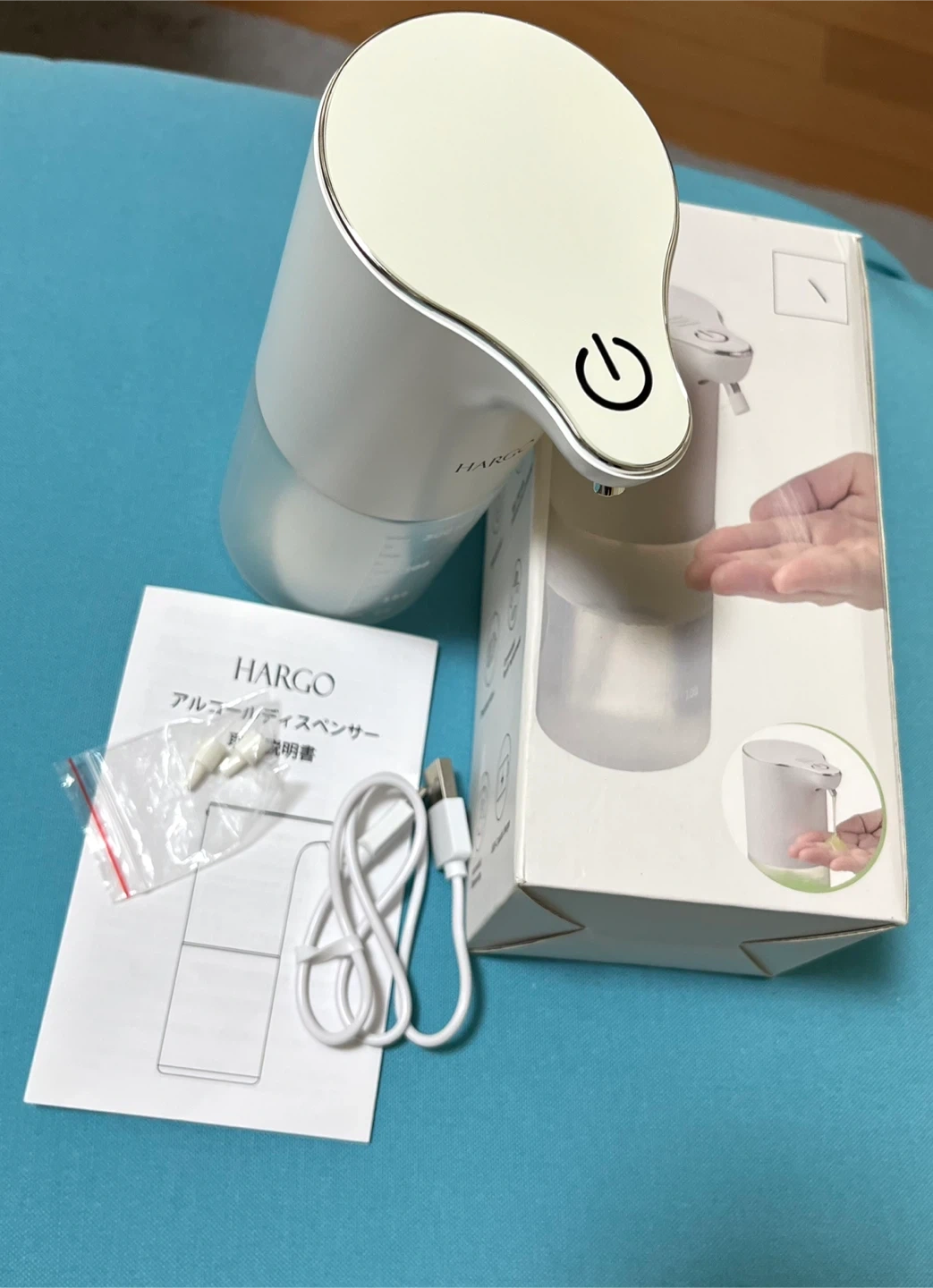 手をかざすだけで液が噴出してきますので、忙しい時や帰宅時などでスムーズに手を清潔にできます。 普段の手洗いでインフルエンザ対策にも活躍します。如何でしょうか 【購入時の商品説明】 ◉4段階調節&洗浄モード 噴出量の時間が0.5秒、第2段階1秒、の2段階で切り替えられます。 ◉場所を取らない直置き・壁掛け兼用&USB充電式 置き型としてはもちろん、壁に貼り付けてカウンタースペースを確保することもできます。 ◉半透明な320 ml大容量タンクのため、頻繁に液を入れる必要はありません。半透明の容器の設計ですので、液を補充する必要があるかどうかを確認するのに便利です。 カラー:ホワイト/透明 ブランド:Hargo サイズ:9.7長さ x 7.2幅 x 18.2高さ cm 形状:円筒形 防水性能:IPX4 充電式:USB typeC 液状、ジェルタイプのアルコールが可能(ジェルタイプの場合はノズルを取り外してご使用ください) →ノズルは外してお手入れ可能 ◉中身確認と動作確認のため1度開封しておりますが新品未使用です。◉1度出しているので未使用に近いにしていますが、新品・未使用品です。 ご了承の上ご購入下さい。