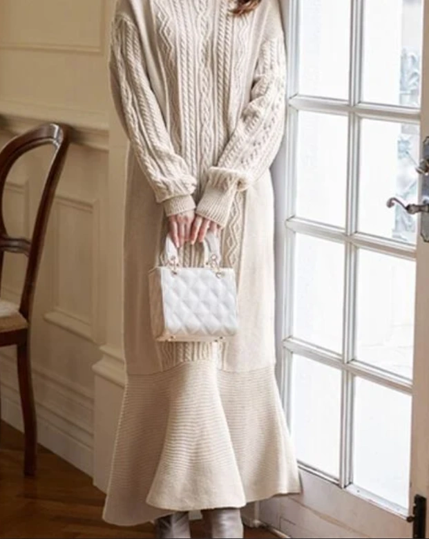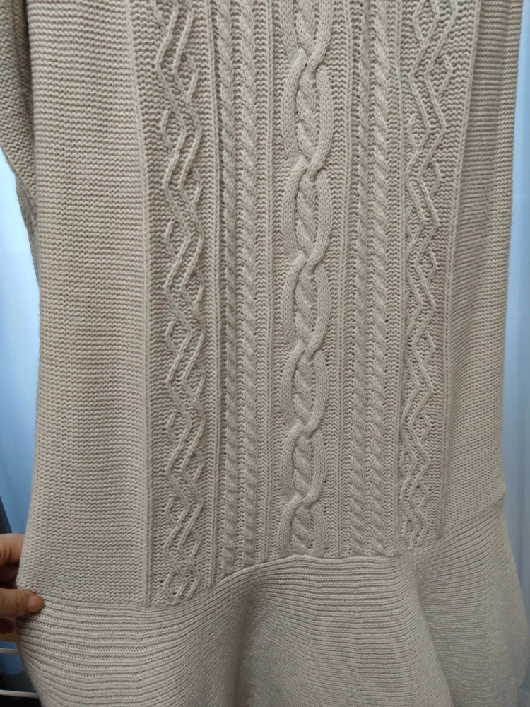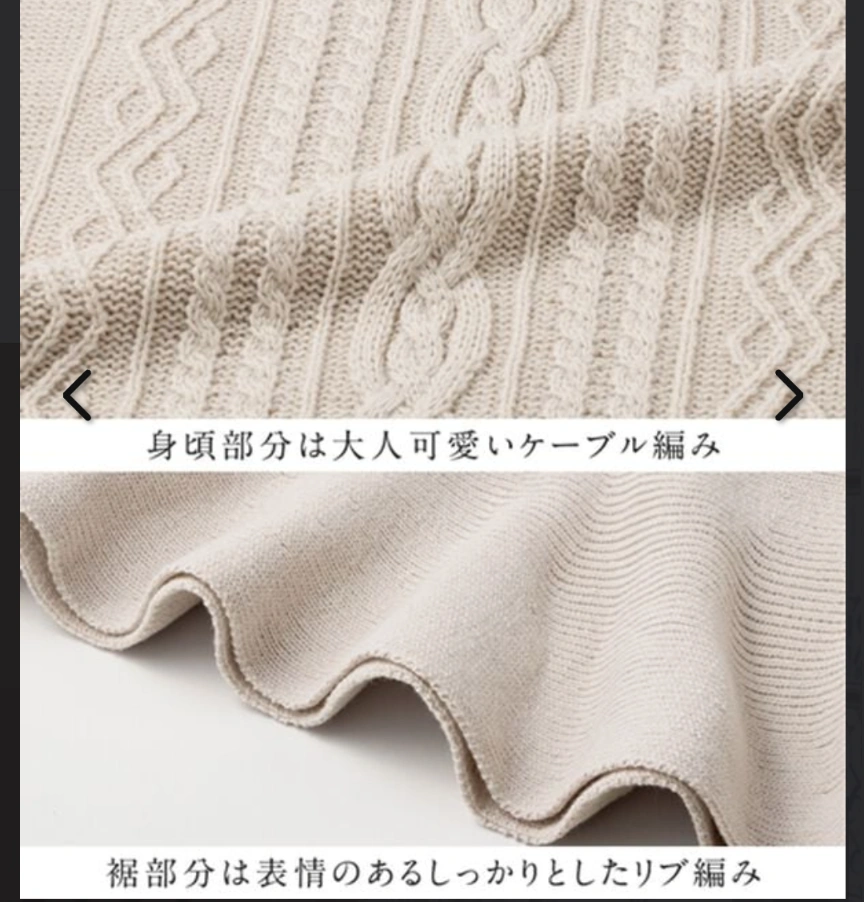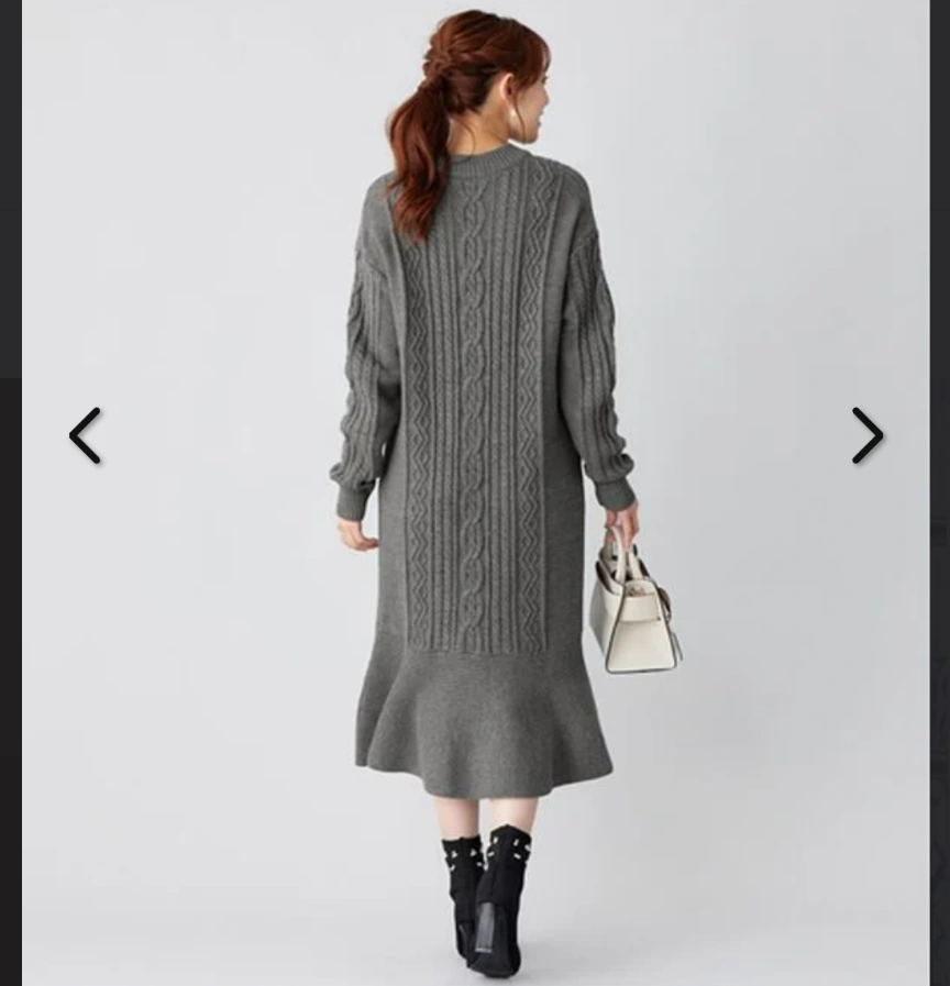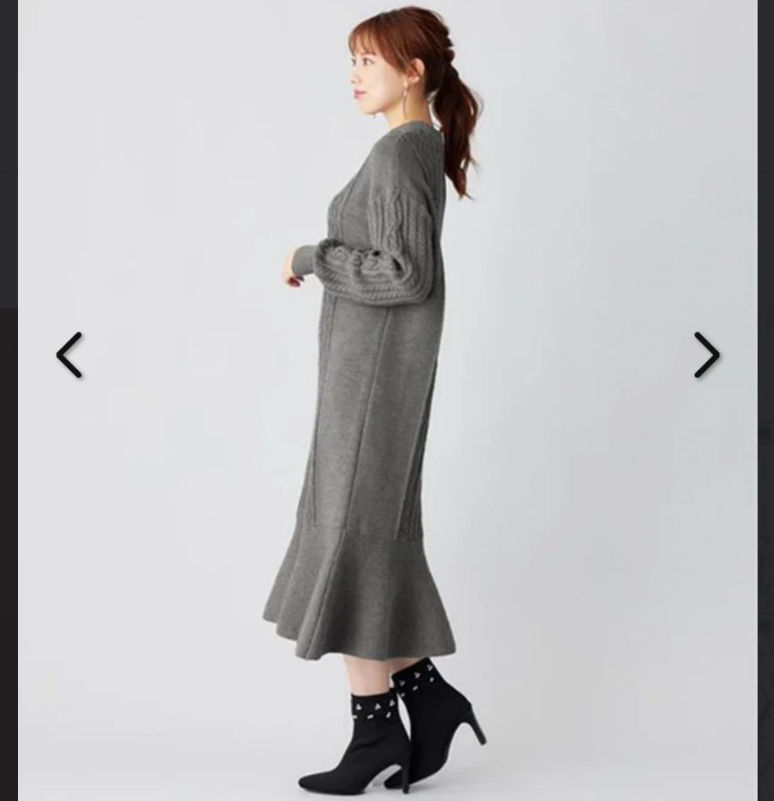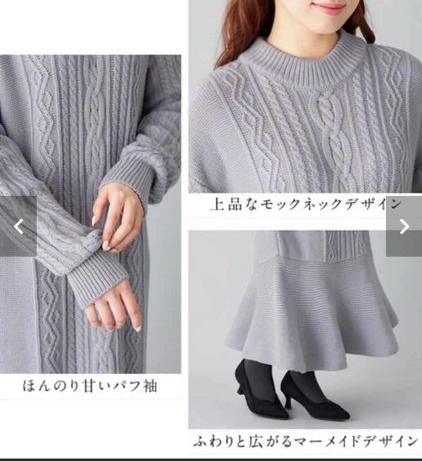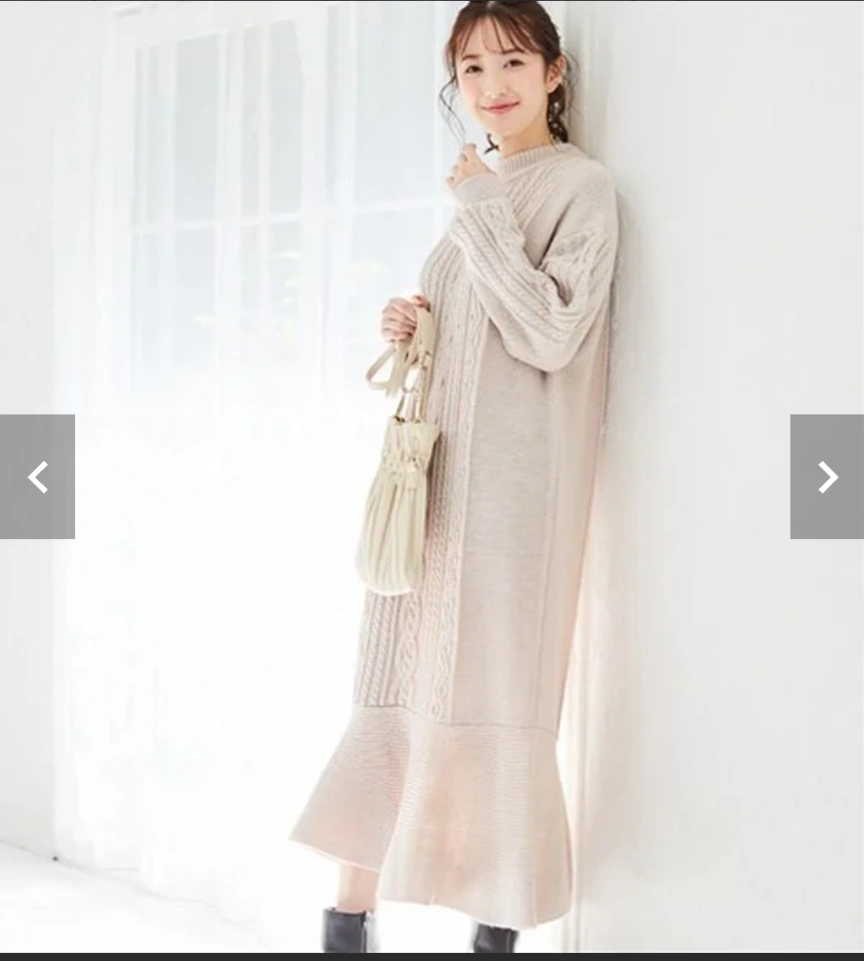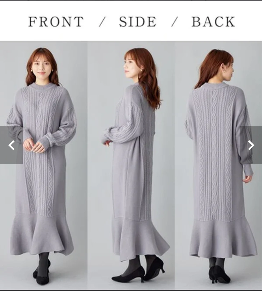 ケーブル柄マーメイドニットワンピースです。 オンラインで購入後、数回着用しました。 目立った汚れ、毛玉はなく、きれいです。 毛羽立ちもほとんどありません。 見落としがありましたらご容赦ください。 着用のたびに自宅でおしゃれ着洗剤で洗ってました。 また着るときは必ず、下に長袖インナーを着用していました。 袖の先と首元のみ、肌に当たっていました。 画像2枚目、3枚目、は色違いです。 サイズはMです^_^ バスト110 前身丈107 ゆき丈83 157cmの私が着て 、ふくらはぎが完全に隠れるくらいです。 肩幅が大きく、中にニット素材のセーターを着ることができて便利です^_^ とてもかわいらしいです^_^ ワンピースをたくさん持っており、クローゼットがパンパンなので、出品します! そろそろニットワンピースの季節です! 通販大手のベルーナのブランドなので、縫製などは問題ありません^_^