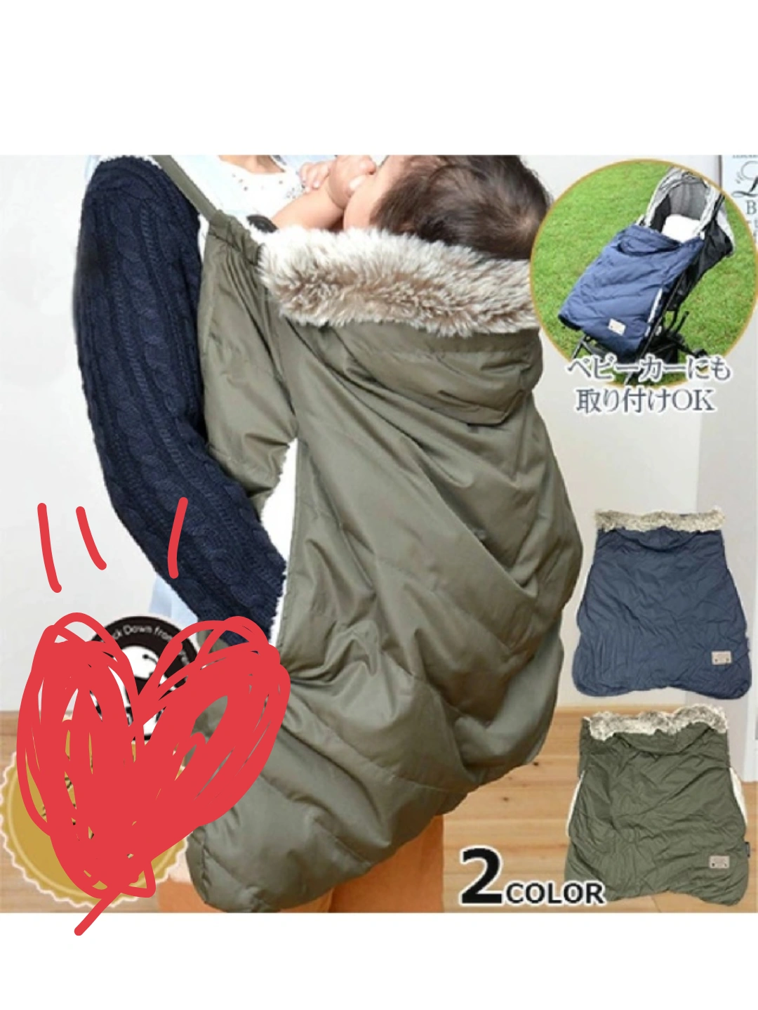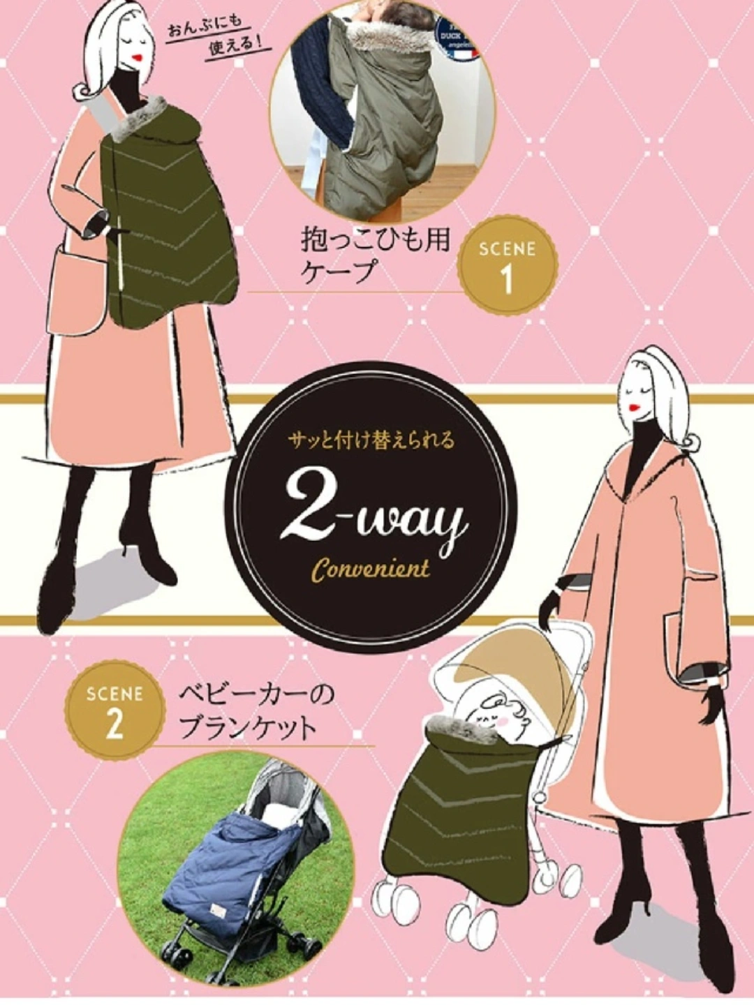 アンジェレッテ抱っこ紐用 ベビーケープベビーカーフットカバー兼用 防寒