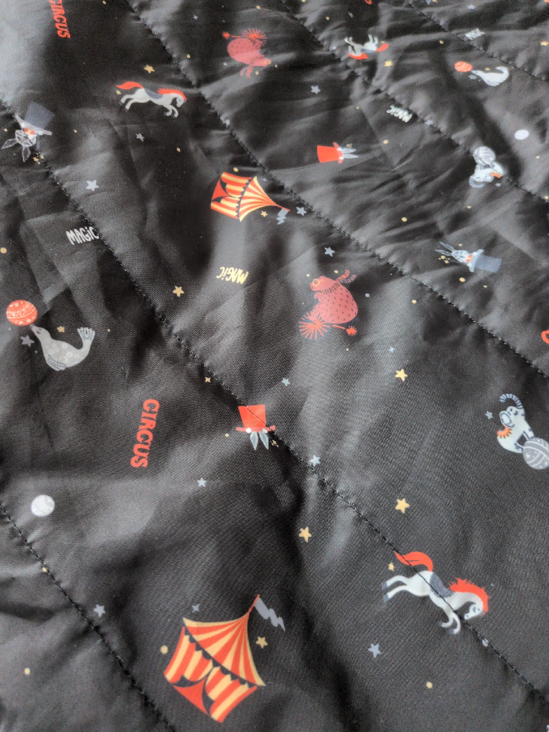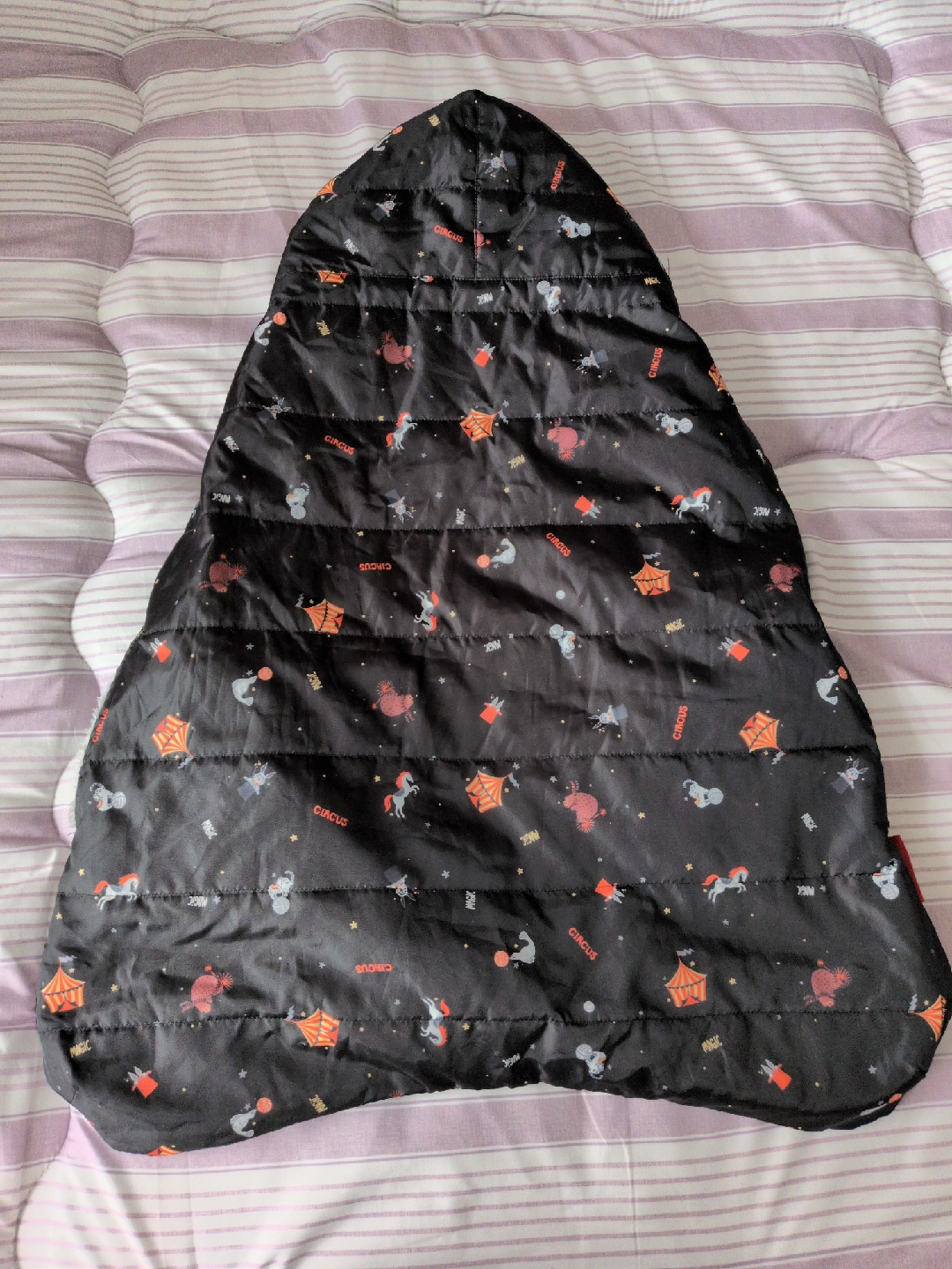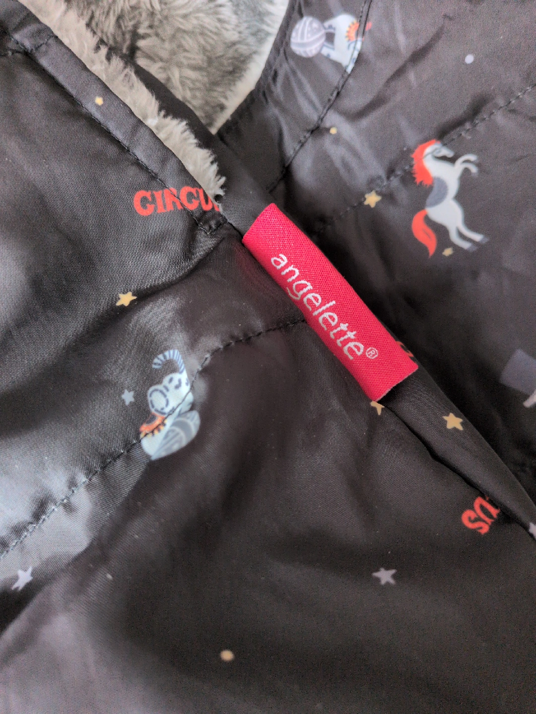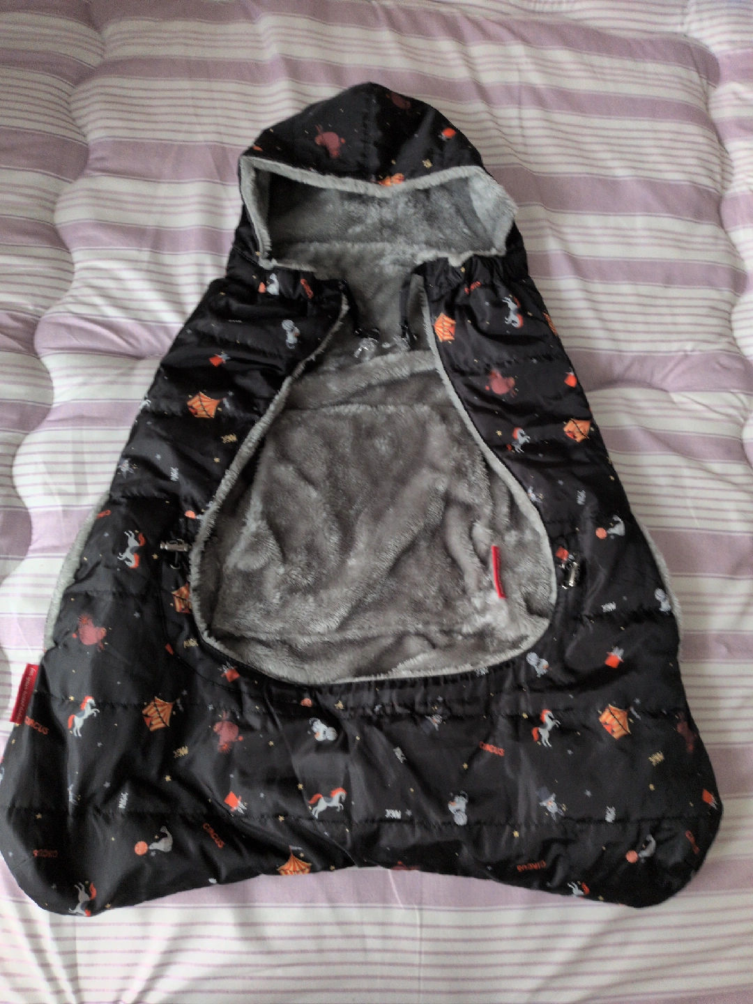 アンジェレッテの抱っこ紐用ケープとベビーカーフットマフ兼用の防寒用品です ・カラー:ブラック ・柄:サーカス柄 ・内側はグレーのボア素材 ・フード付き ・記名なし 5年くらい前に購入した物です。 冬季に抱っこ紐用に1年、次の年にベビーカーのフットカバーにして数回使用しました。 極寒の時野外ではポカポカで助かりました。 寒い日に余り外出する事がなかったので使用頻度は少ないです。 目立った傷や汚れは無いかと思われますが、神経質な方はご購入ご遠慮ください。 猫を一匹飼っています猫アレルギー等ある方はご購入お控えください。 中古品であることご了承ください