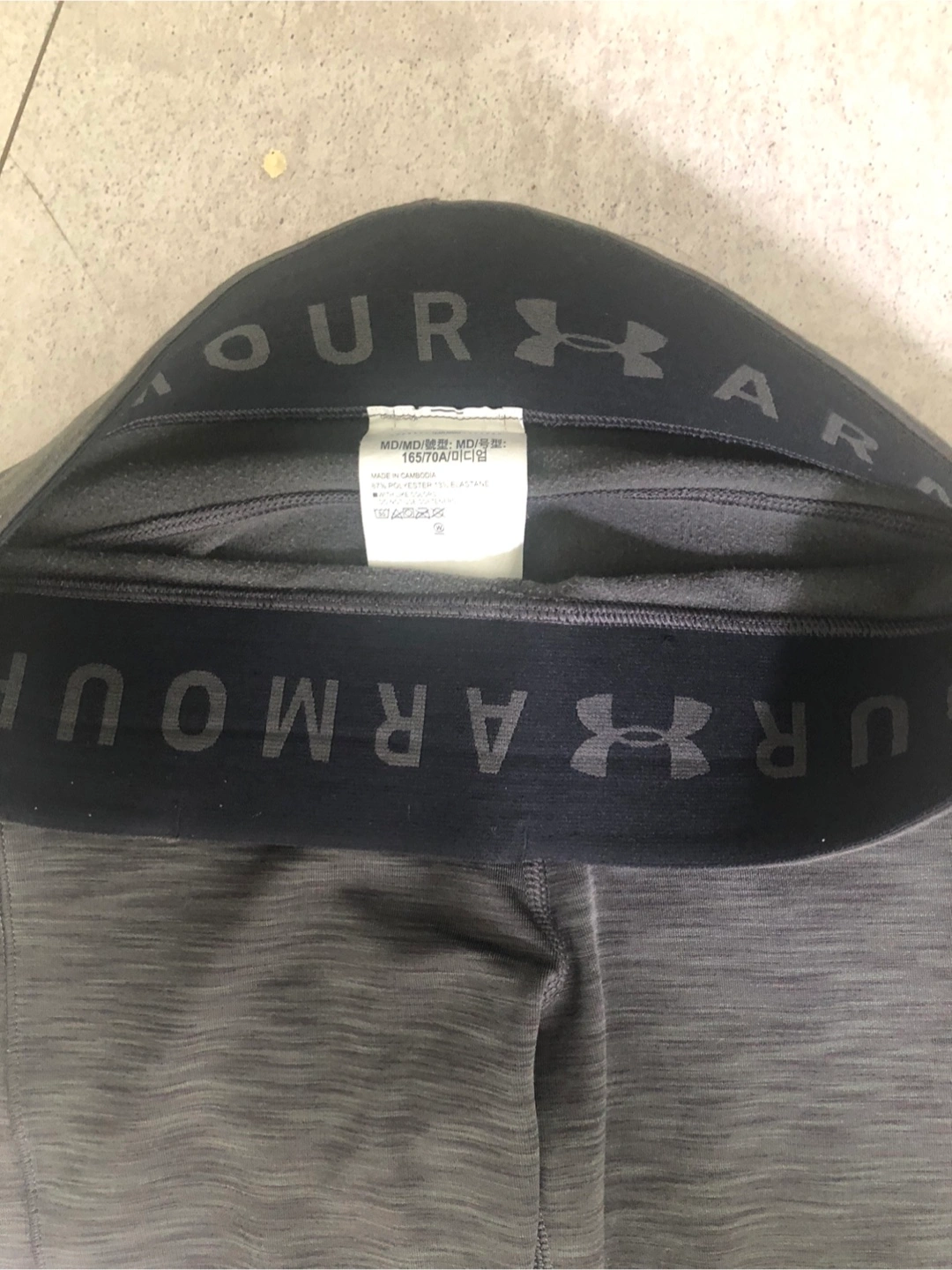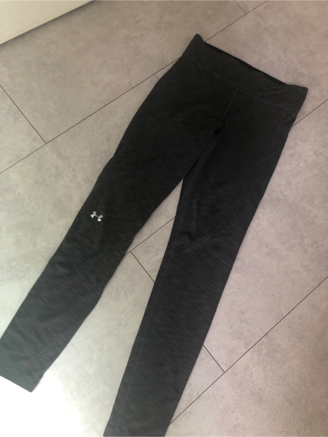 UNDER ARMOUR アンダーアーマー レギンス ヨガ用に数枚購入し此方は使用せずにしまったままです お探しの方にお譲りいたします スポーツ用のレギンスタイツでお色はグレーと黒の混じりです 生地は厚すぎず薄すぎず程よい厚みで、心地良いなめらかな肌触りでやさしく伸 縮して包み込むフィット感 用途はジムやヨガ、ランニングなどスポーツ全般、ウォーキングやお散歩など 前ウエスト部分に小さなポケットあり 膝辺りに切り替え有り サイズ : MD