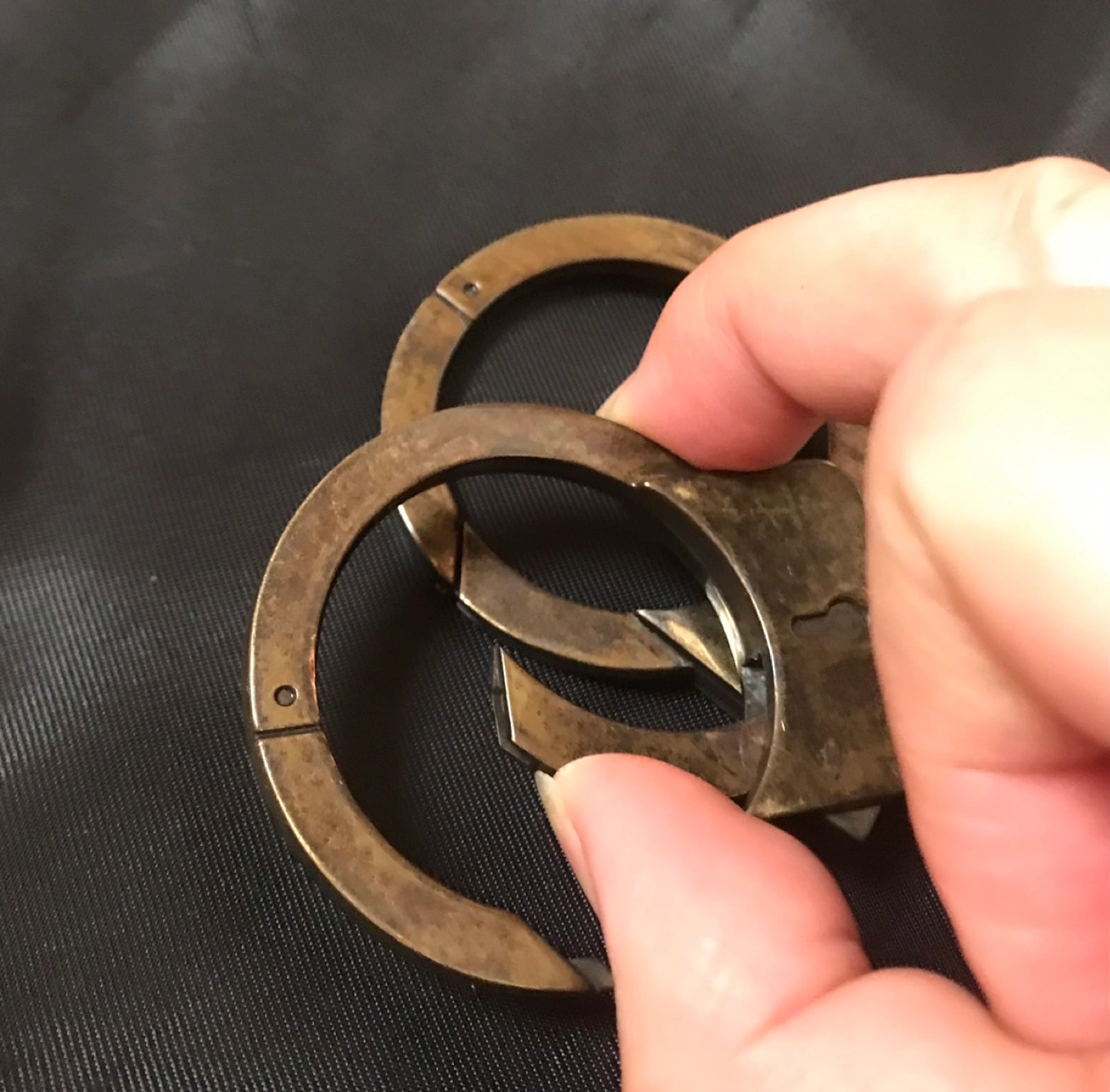 金属製の手錠型キーホルダー、約15cmのサイズでユニークなデザイン。 手錠の両方がキーホルダーになっています。 倉庫から出てきました。壊れはないですが 自宅保管の中古品になります。中古品にご理解ある方にお譲りします。 - タイプ: 手錠型キーホルダー - 素材: 金属製 - サイズ: 約15cm(伸ばした状態の全長) ご覧いただきありがとうございます。 #手錠 #キーホルダー #チャーム #インテリア #警察