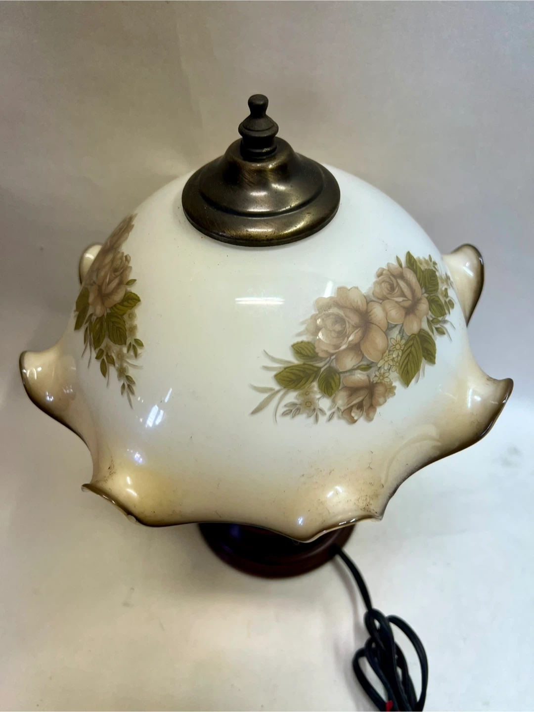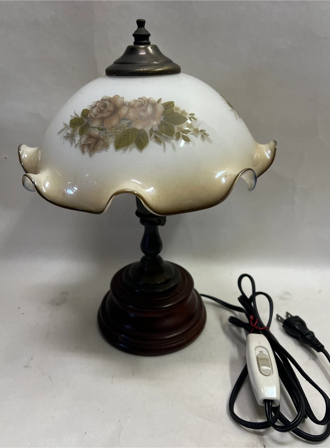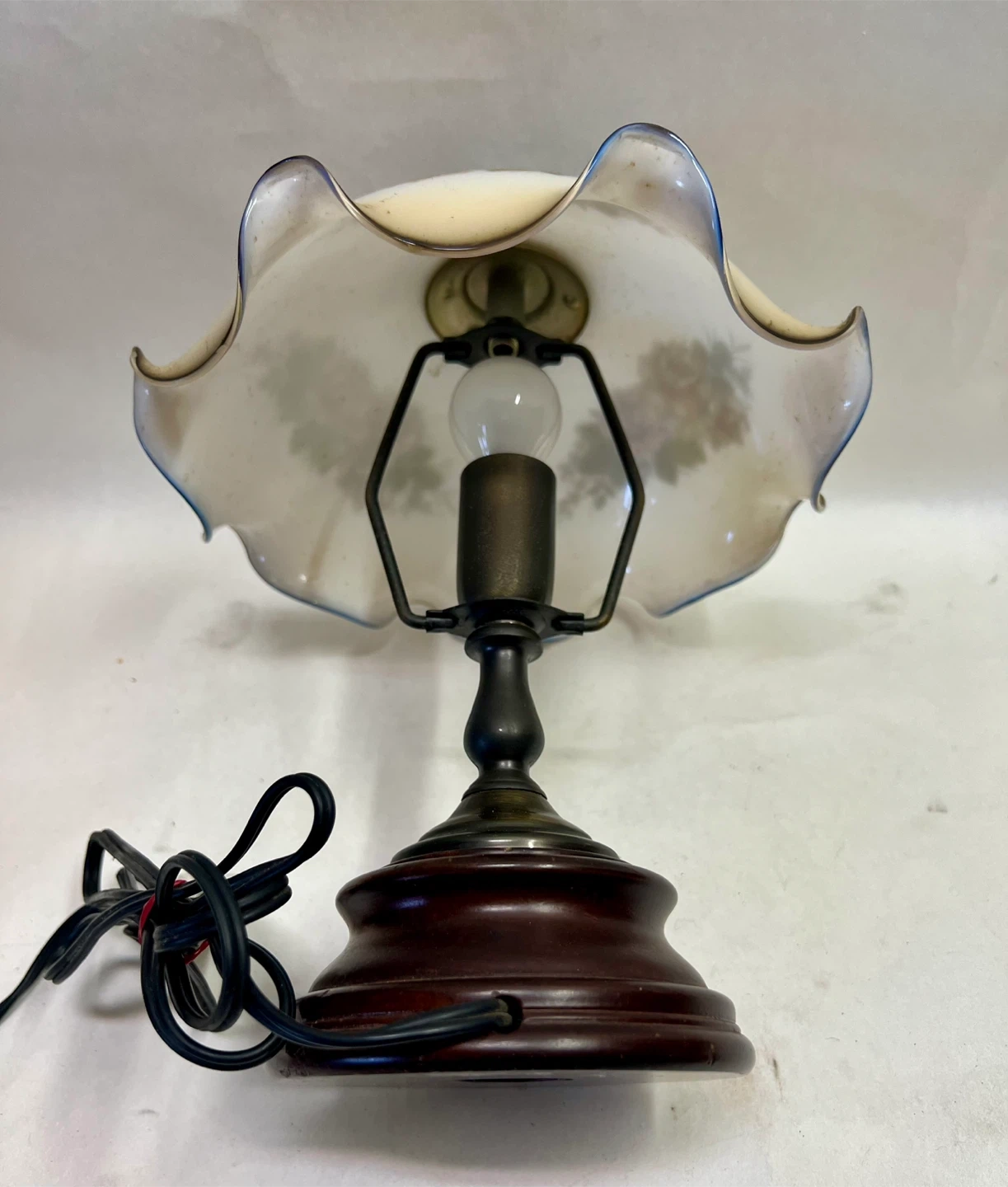 アンティーク フリルガラス 硝子 薔薇図 卓上 テーブルランプ 木製台座