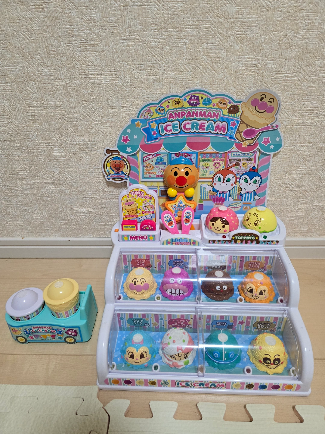 3つセットです 写真に無いものは無いです 本品詳細をご確認ください アンパンマン かまどでやこうジャムおじさんの焼きたてパン工場 パンを入れる袋2つ無し 紙のお金無し 看板無し メニュー表無し アンパンマン のっけてポン!光ってオーダー★アイスちょうだい!!DXセット アイスを入れる箱無し 看板無し 透明の扉に多少の傷あり アンパンマン ノリノリライブ♪ BIG電子ドラム&キーボード マイクの接続若干悪い 値下げ交渉ありです 清掃してお渡しします! 2年くらいは使用しています 3つとも一度にお渡しするので 車での持ち帰りをおすすめします 場所は駅近くでも大丈夫です! 新小岩、小岩、船堀、一之江、 その他は要相談です