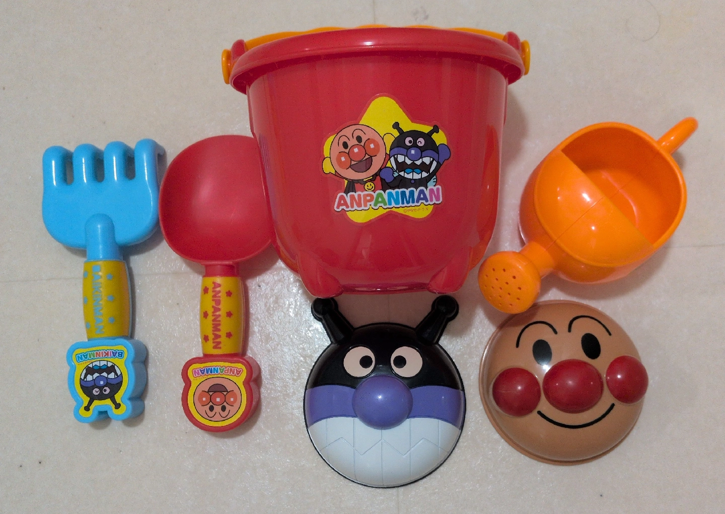 あたたかさアンパンマンのお砂場セットです ・バケツ、スコップ、くまで、ジョウロ、顔型おもちゃ2個のセット ・使用感多少あり 使用頻度は少ないですが砂なので傷がついてます。 綺麗に洗ってはありますが、神経質な方はご購入ご遠慮ください。 猫を一匹飼っています猫アレルギー等ある方はご購入お控えください。 中古品であることご了承ください
