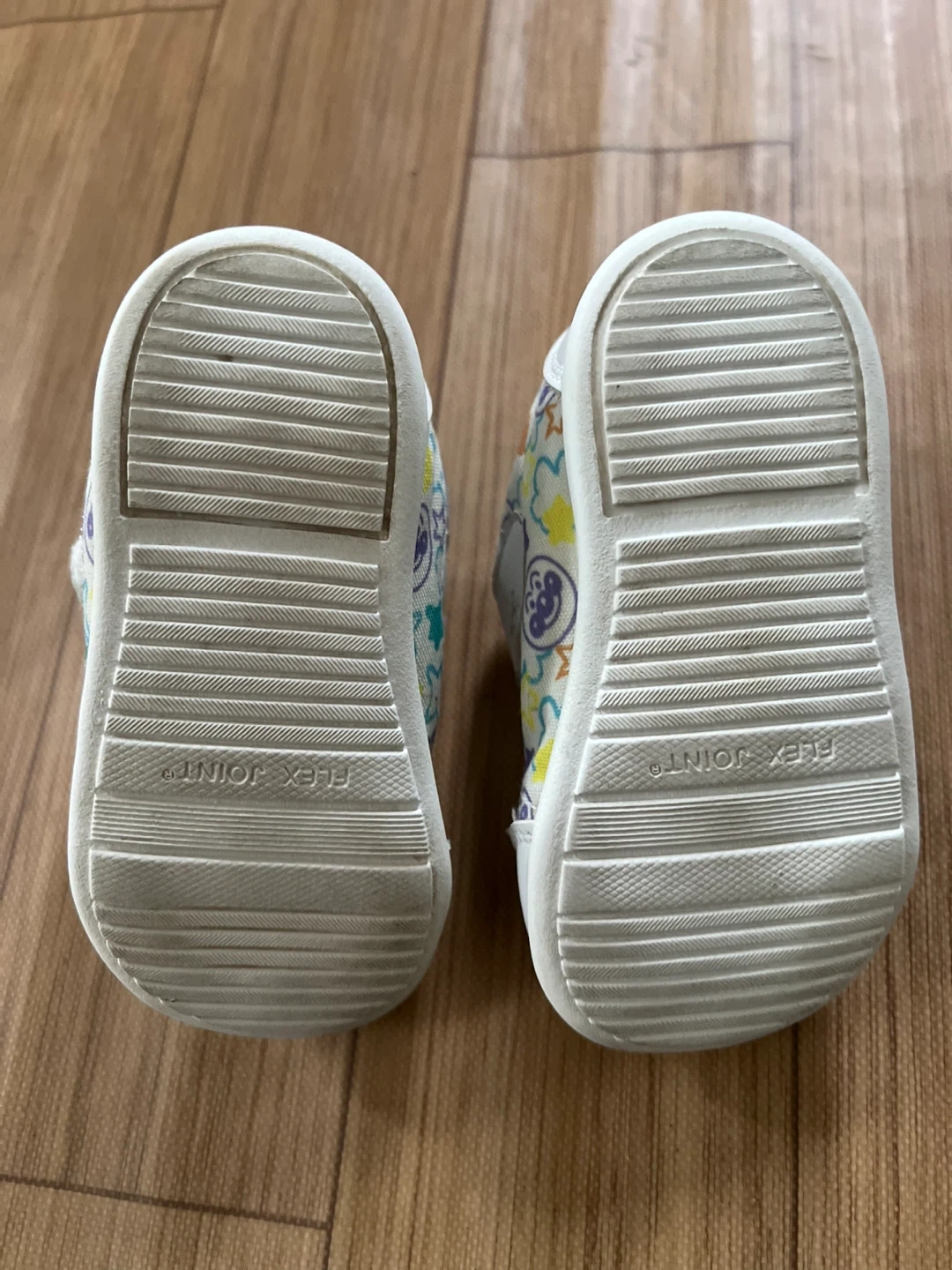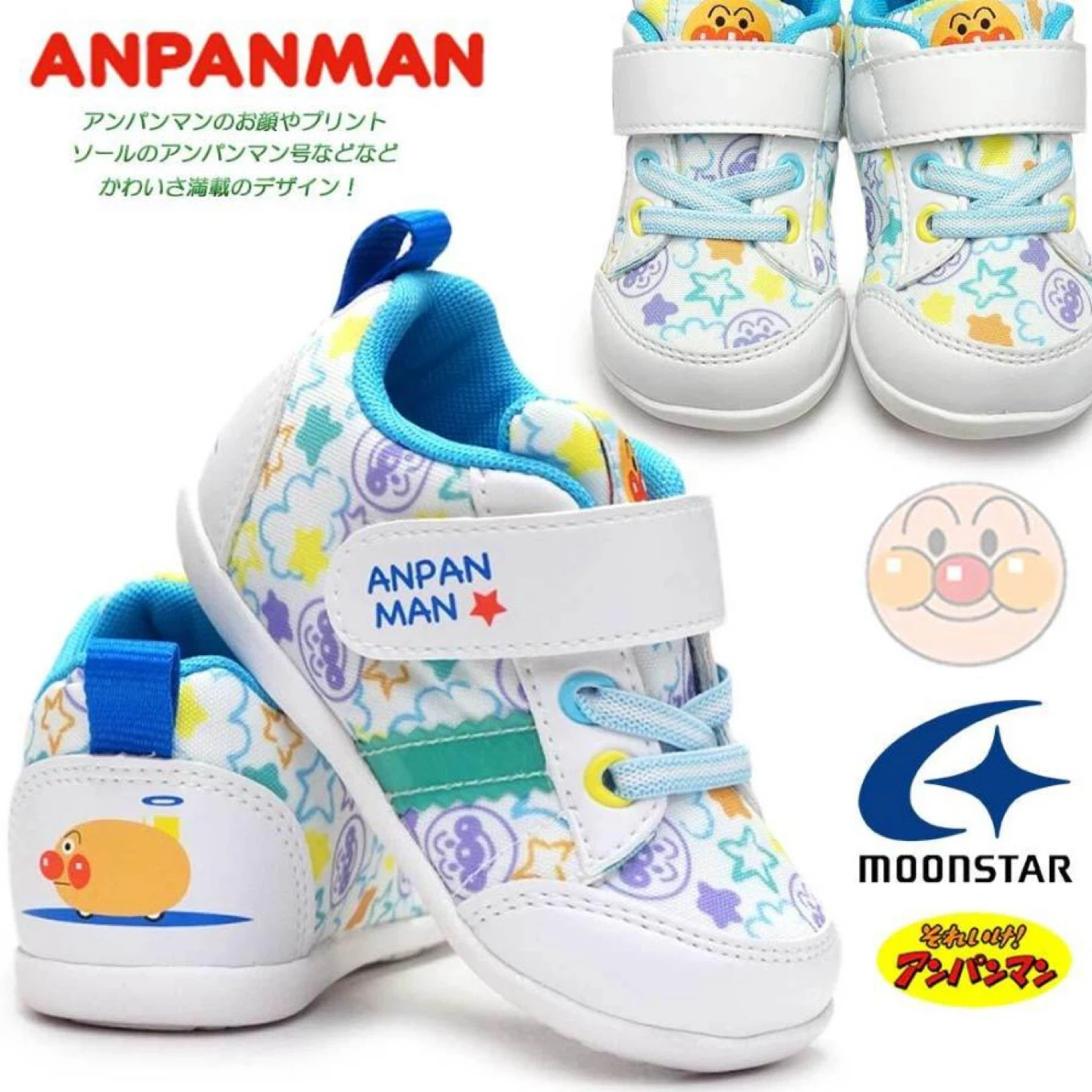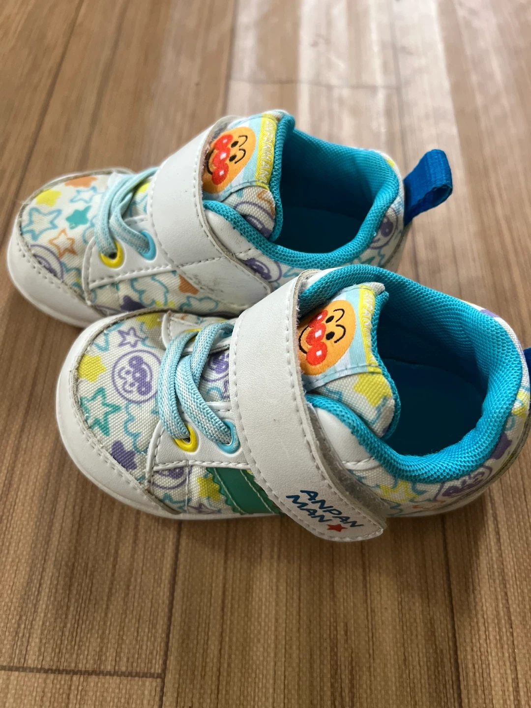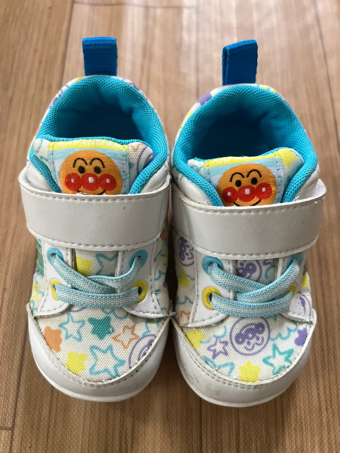 アンパンマンのベビーシューズ(ムーンスター) ・ブランド:アンパンマン ・色:白、水色、柄あり ・サイズ:13cm 男の子でも女の子でもどちらも履ける可愛い総柄のシューズです! 割とすぐサイズアウトした為、 底のすり減りもなく良好な状態だと思います! まだまだじゅうぶん履ける靴なので アンパンマン大好きなお子様にぜひ♪ ※ホームクリーニング済みですが子供が使用したものとご理解の上でお取引きください。