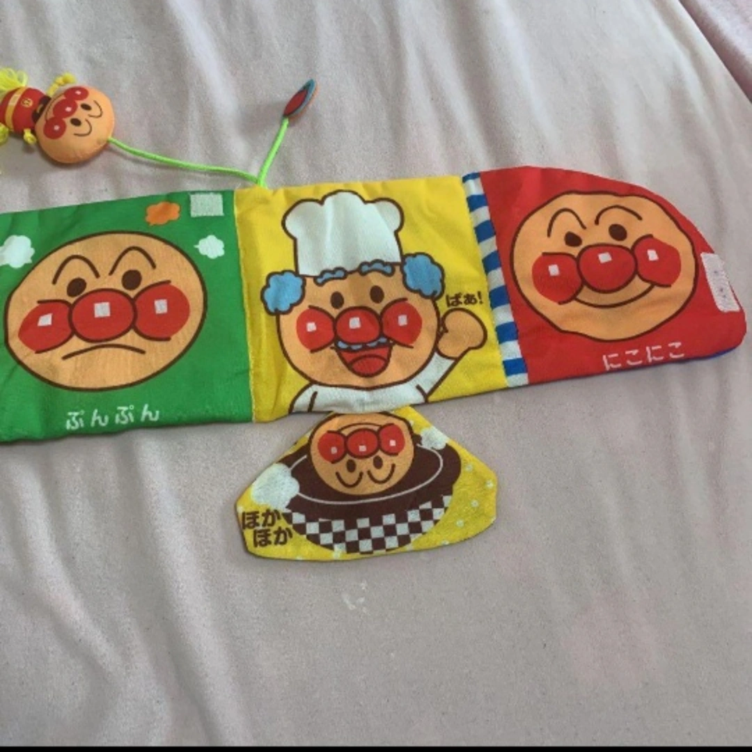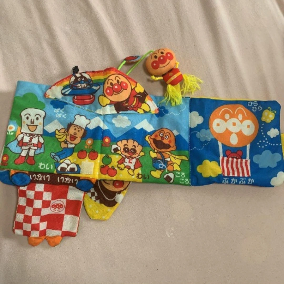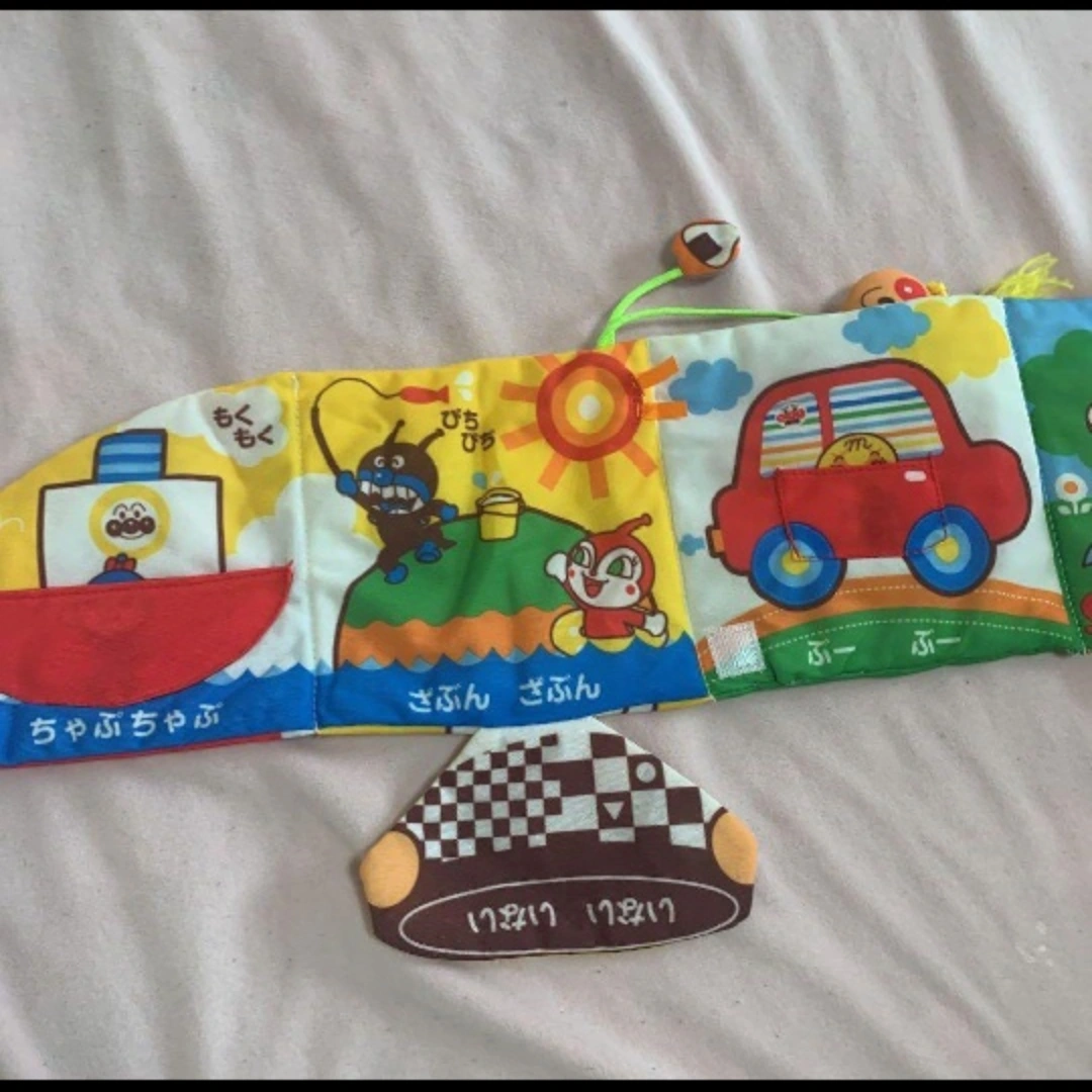 定価:3520円 ほぼ遊んでくれず、ほぼ触らずに子供が成長してしまいました。 そんなに遊んではないですが、マジックテープ一部、使用感あります。 ☆表裏リバーシブルの内容たっぷりの布えほんです。 赤ちゃんが大好きパリパリ感触や飛び出すしかけ、鈴の音やいないいないばぁ遊びなど赤ちゃんが気になるしかけがいーっぱい!の布製でなめても安心の布えほんです。 1.ねんねの頃は立てかけて 2.えほん型で読み聞かせ 3.ひろげた形でうつぶせで手遊び と成長に合わせて3wayで遊べます。 水洗いできるので清潔に保てます。 【遊べる内容】 いないいないばぁ 飛び出すしかけ アンパンマンマスコット(リンリン鈴入り) なめなめタグ パリパリ感触 指遊びひも ポケット 【対象月齢】 3ヶ月~(くびすわりの頃) 【サイズ】 W約360mm×H約230mm×D約50mm 【生産国】 中国 ※お出かけする時に、どこかに引っ掛ける用の輪っかが付いていたのですが、それだけ紛失してしまい、付属していません。 ※自宅保管、素人検品の中古品なので、細かいことが気になることはご遠慮ください。 ※小さく畳み梱包しますので、畳ジワ等ご了承頂けたらと思います。