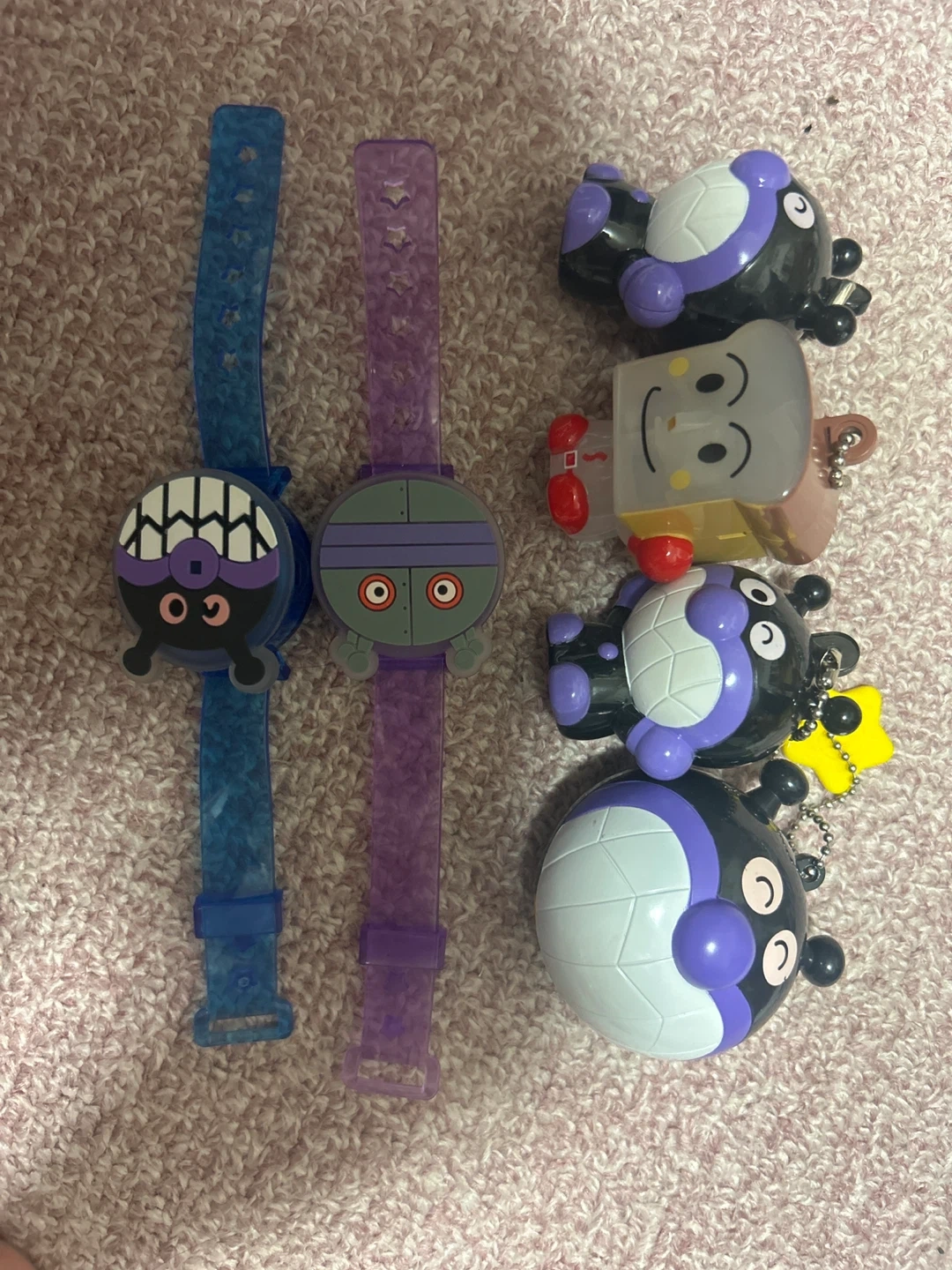 アンパンマンの時計とキーホルダーのセットです ・時計2点 ・キーホルダー4点 ・色:青、紫、グレー、黒、白 ・子供用 ・使用感あり ・使用していませんが管理している中で少し傷が付いています ・食パンマンは後ろにレバーがあり光ります ・同じようにバイキンマンも光ります 中古品であることご了承ください