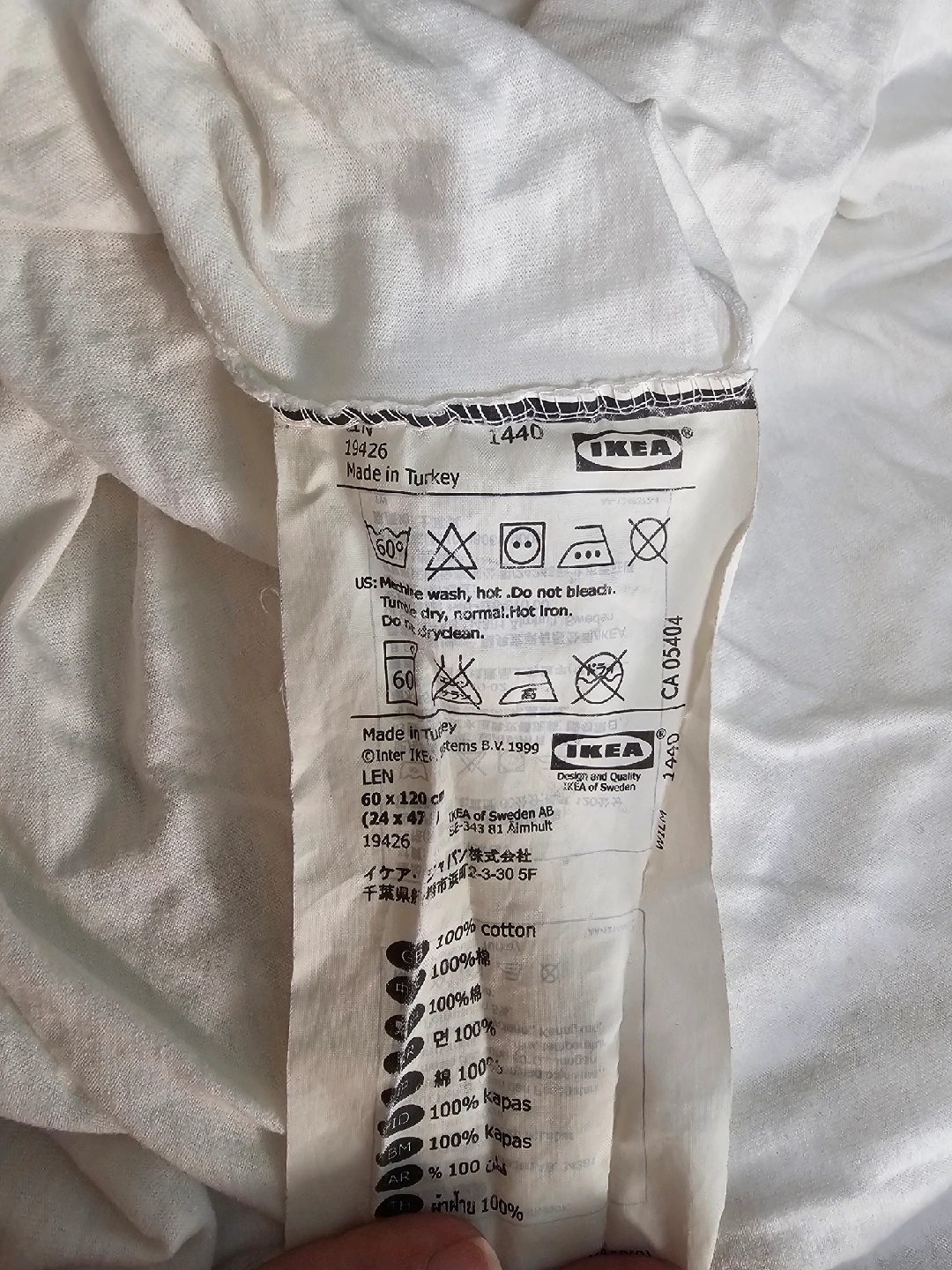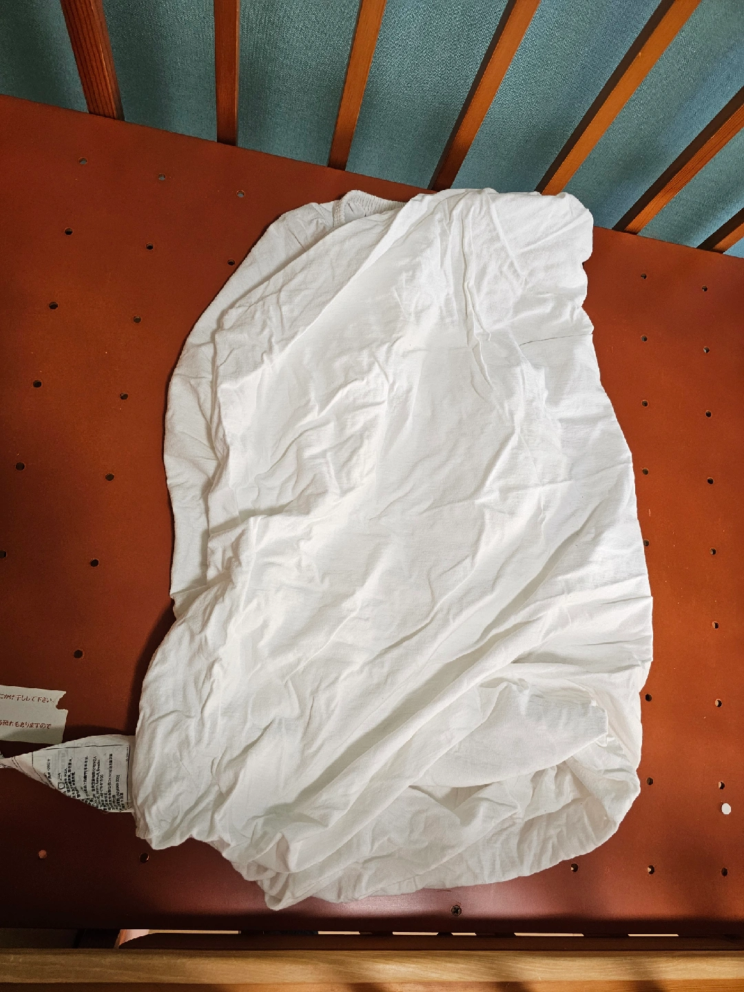 イケアのベビーベッド用シーツです ・カラー:ホワイト ・素材:100% コットン ・サイズ: 60 x 120 cm ・使用感少なめ しまってあったので、シワがひどいですが、洗濯して頂ければ戻ります。 中古品であることご了承ください